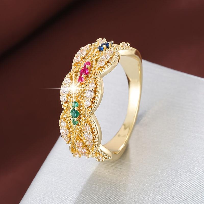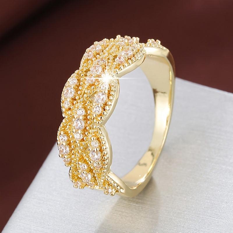 Add a touch of elegance to your daily wear or party outfits with this versatile ring. Crafted with synthetic zirconia stones and golden plating, it is a perfect accessory for any occasion.