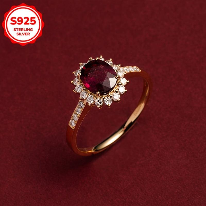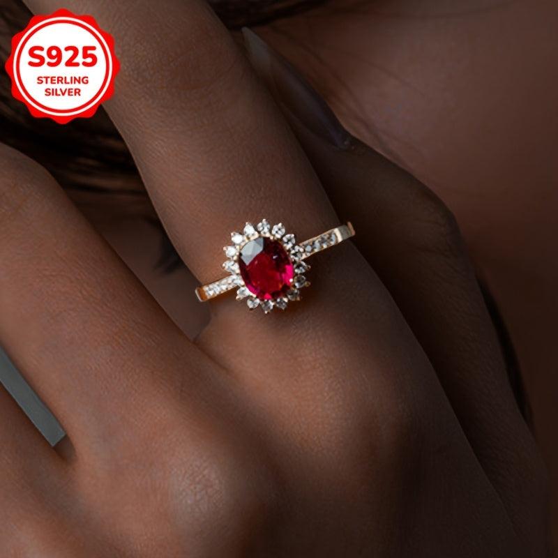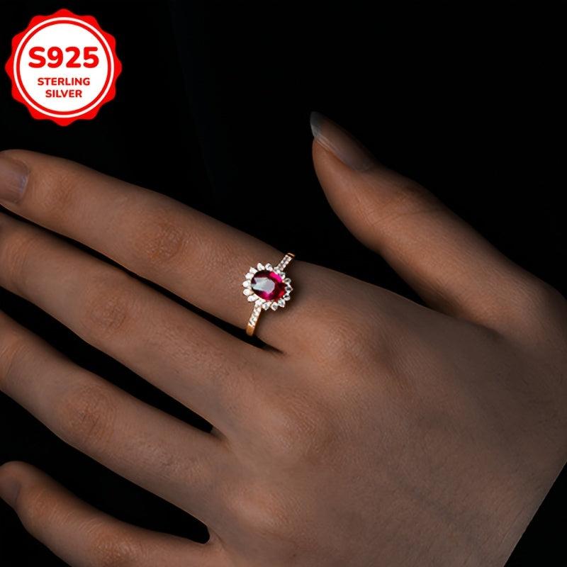 Add a touch of elegance to your daily look with this stunning floral ring featuring a red garnet and sparkling cubic zirconia stones. Made of high-quality S925 sterling silver, this ring is perfect for everyday wear and makes a great gift for someone special.