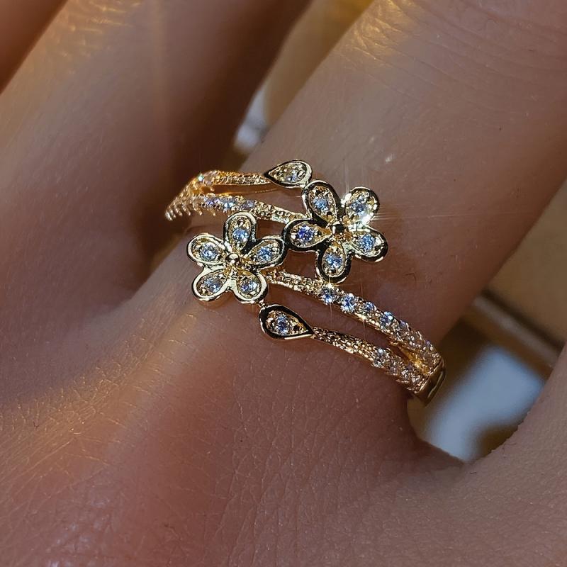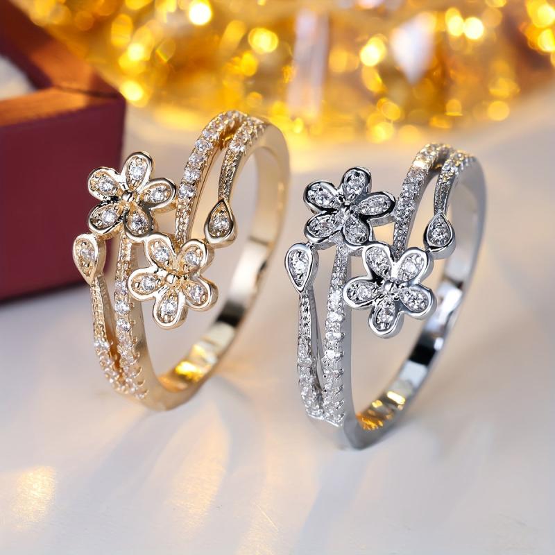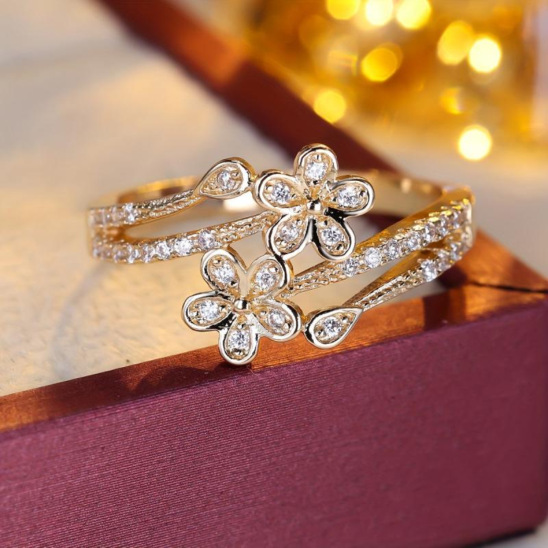 This stunning double sided ring features a golden tone design with sparkling cubic zirconia stones, perfect for daily wear or as a thoughtful gift.