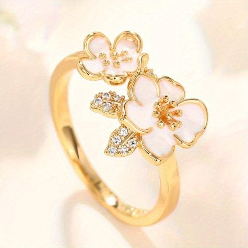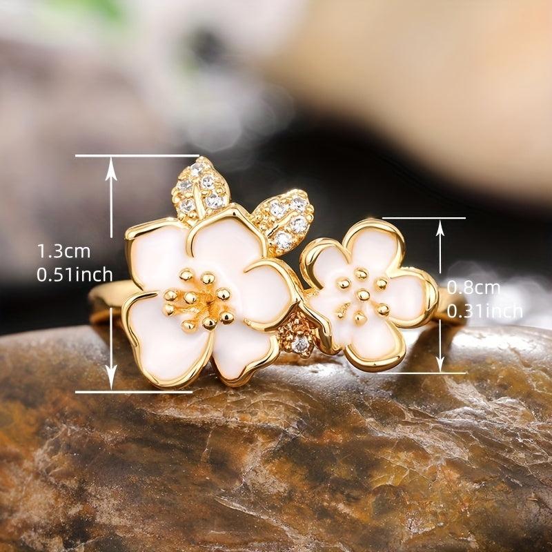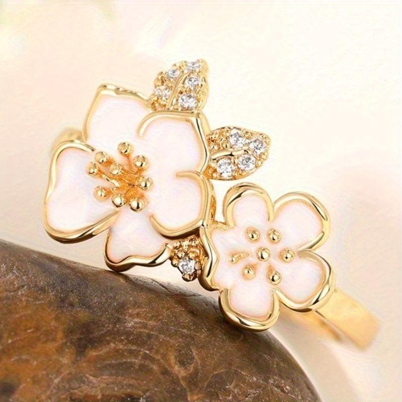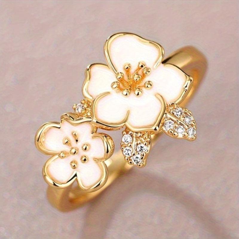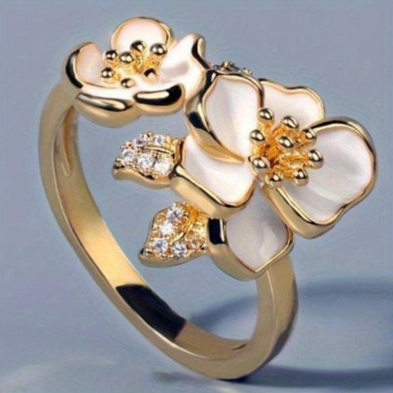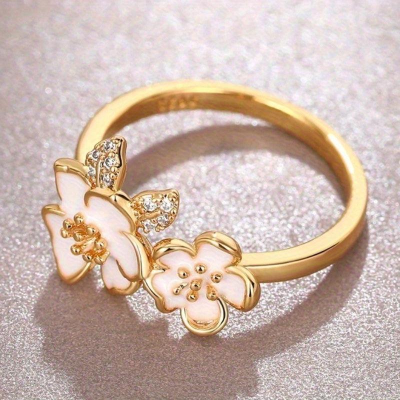 Elegant women's wedding band made of plated copper featuring a synthetic zirconia flower design with the April birthstone. Perfect for bridal occasions, vacation, and daily wear. Ideal as a birthday gift or wedding jewelry.