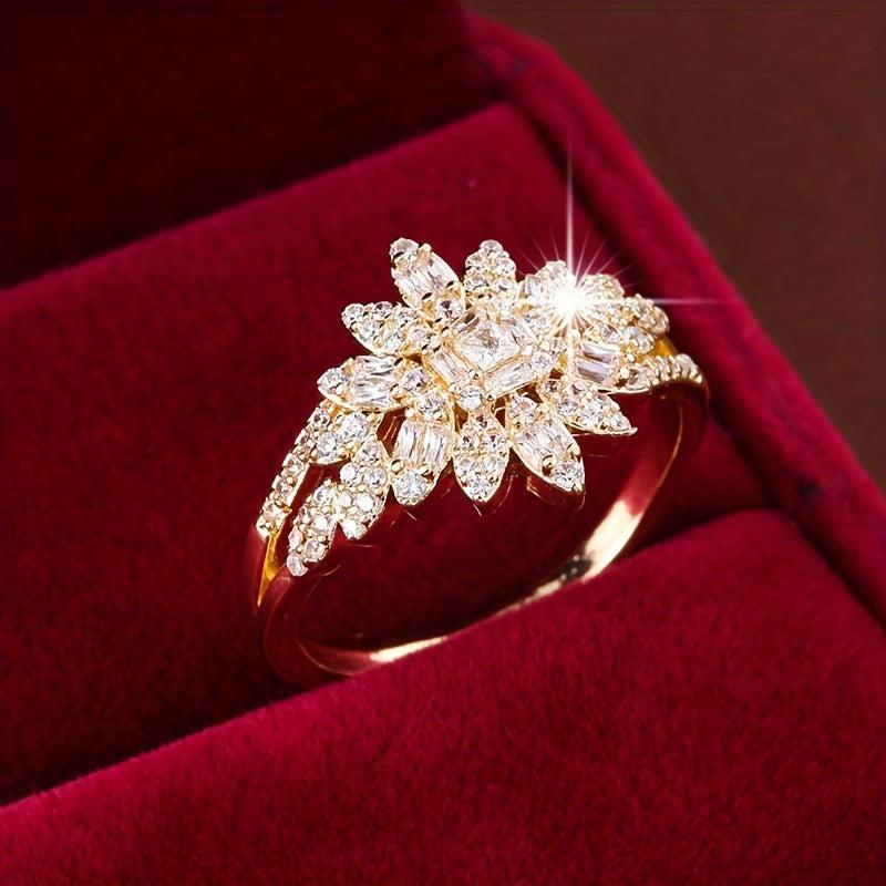 This beautiful ring features a synthetic zirconia gemstone set in a flower design. Perfect for adding a touch of sparkle to any outfit.