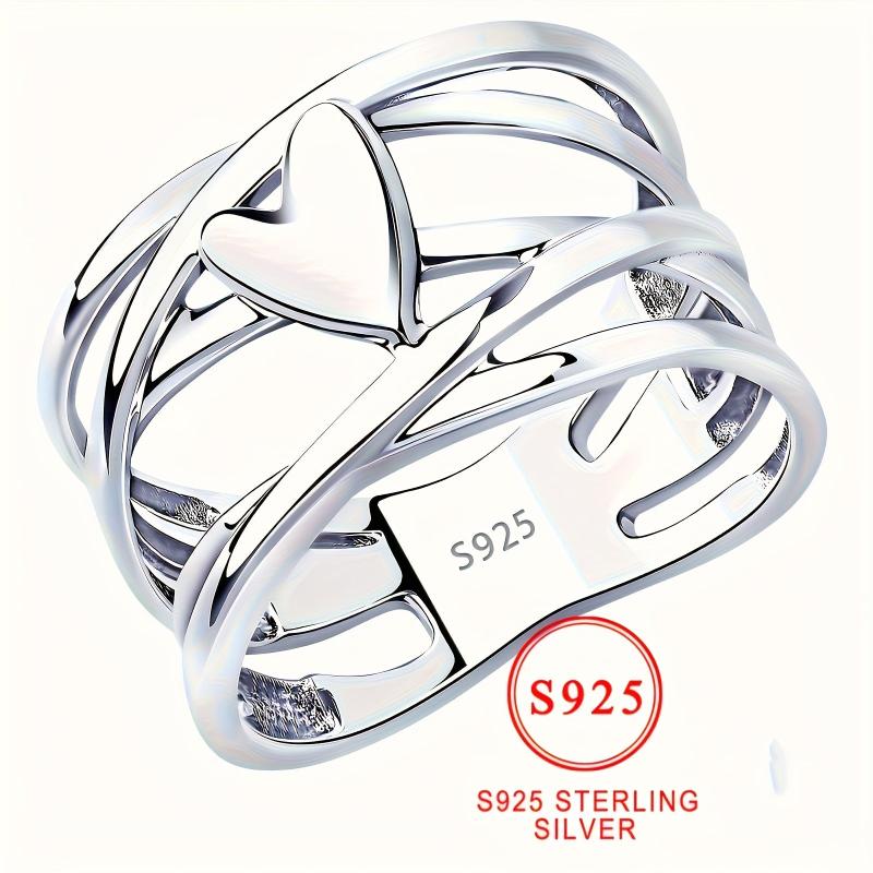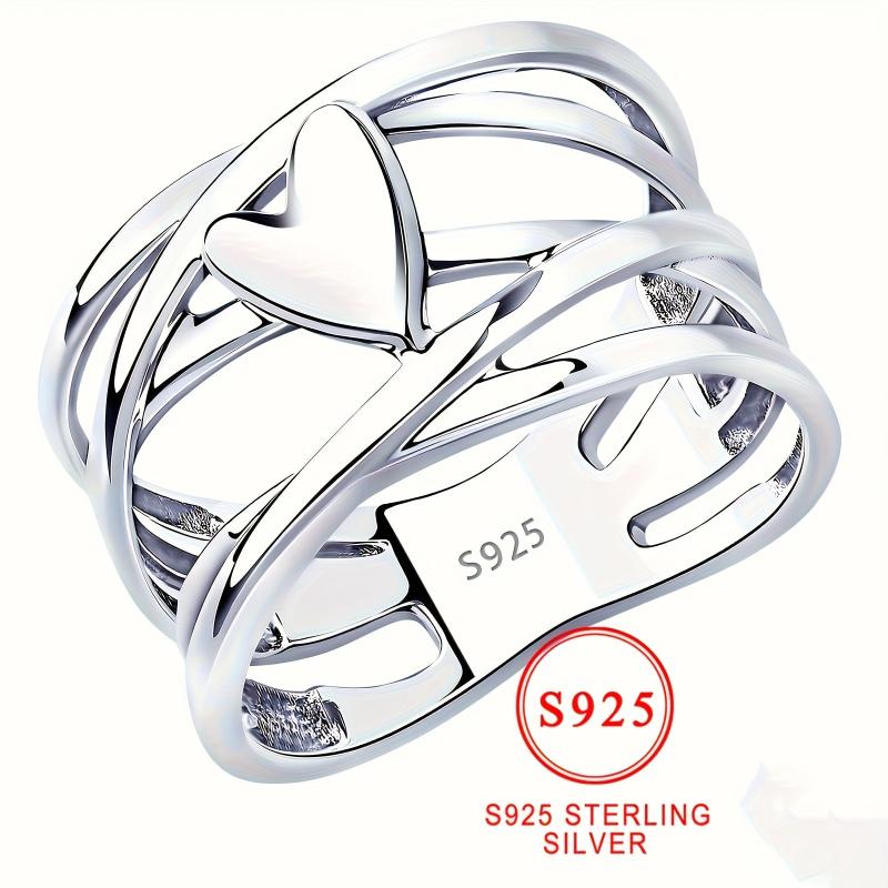 Elegant French 925 Sterling Silver heart ring with a silvery plating, perfect for those with nickel allergies. This stunning ring adds a touch of romance to any outfit.