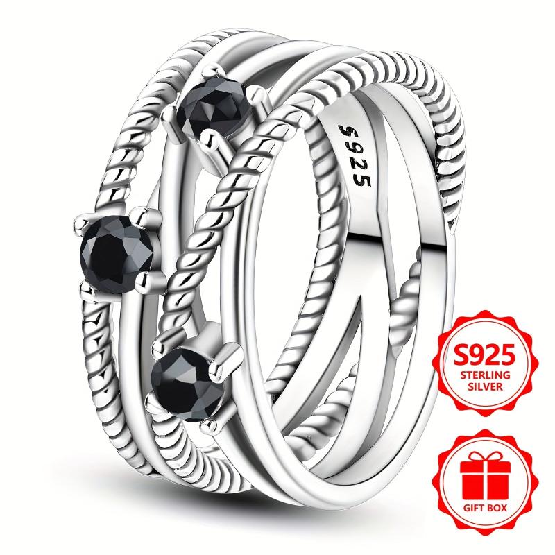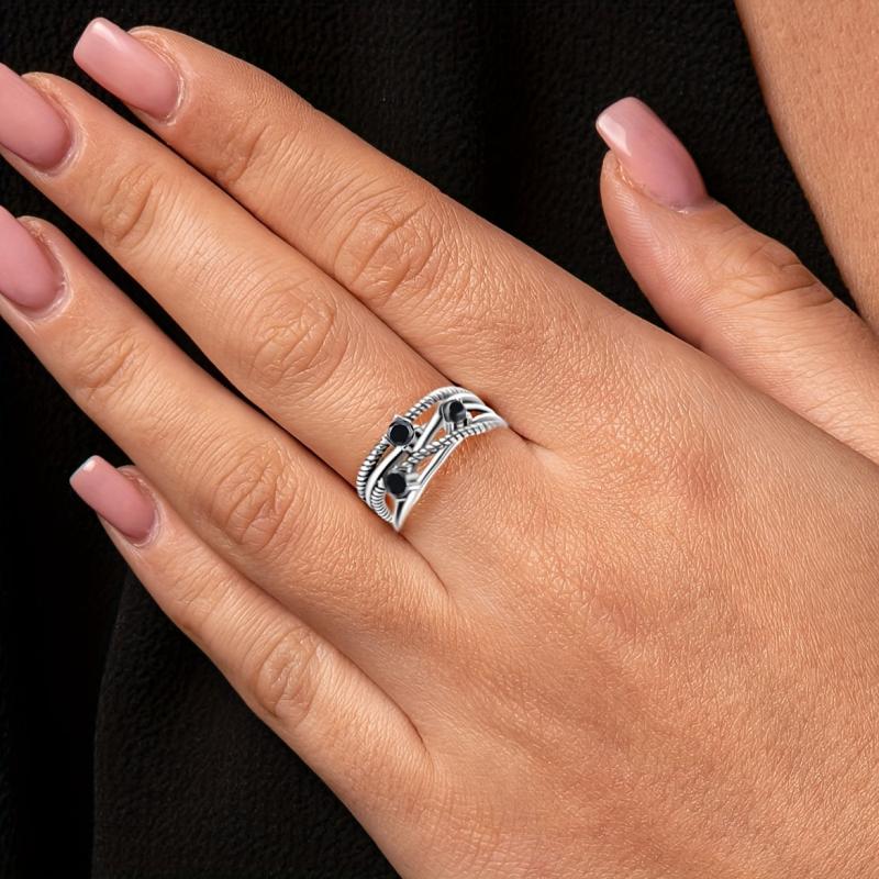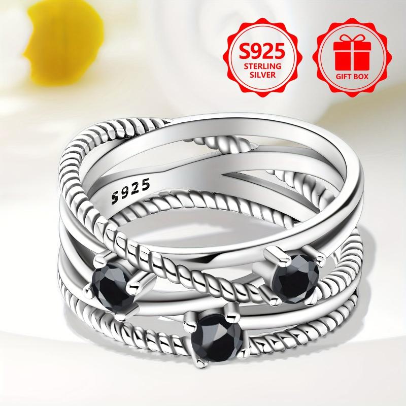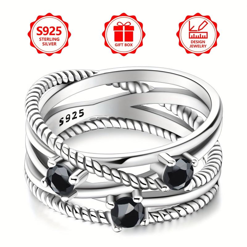 Elegant 925 sterling silver ring featuring a polished twisted design with synthetic zirconia, ideal for daily wear, weddings, dates, and parties.