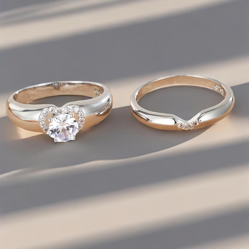 Elegant and romantic, this set of couple rings features heart-shaped designs that symbolize love. Perfect for couples who want to express their affection with style.