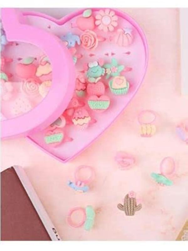Engage kids in imaginative play with these adjustable fruit finger rings. This set includes 36 colorful pieces in a convenient storage box.