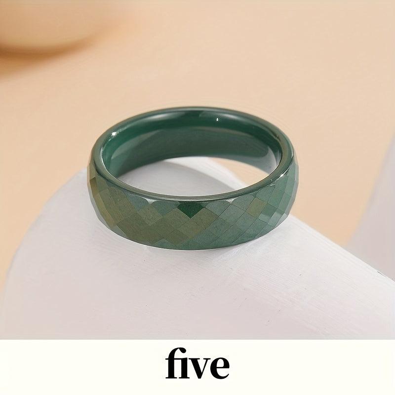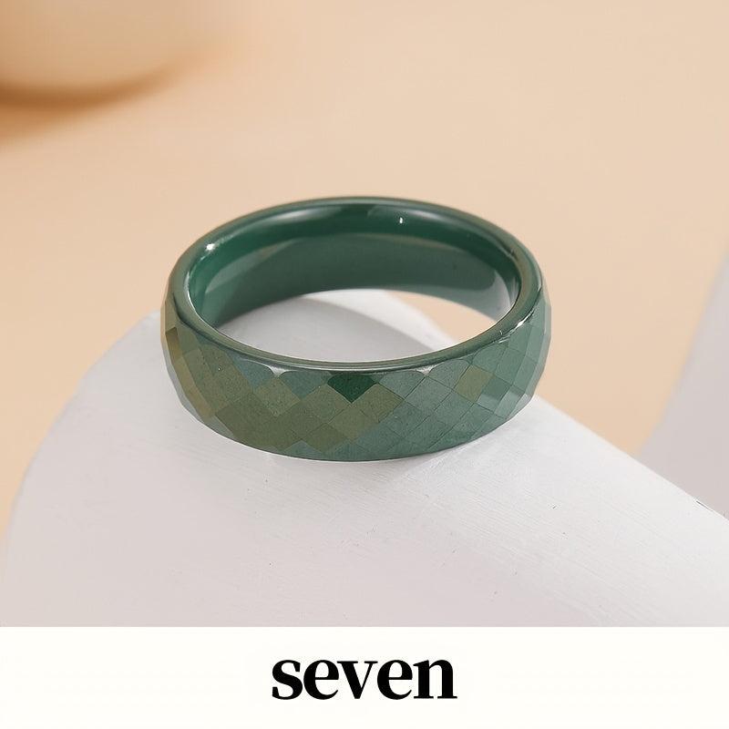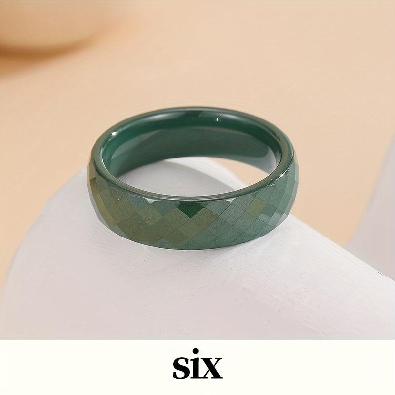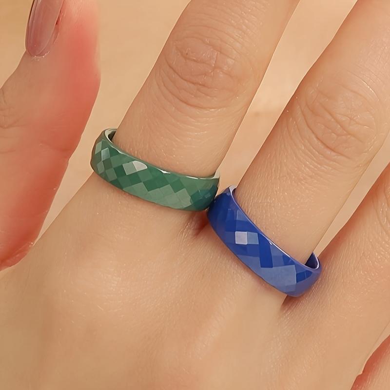 Minimalist dark green and cobalt ceramic rings suitable for daily wear. Can be stacked to create unique combinations.
