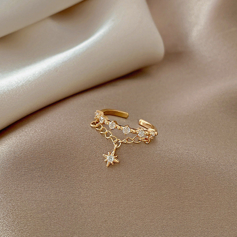 This elegant ring features a star shape pendant and adjustable design, perfect for adding a touch of geometric style to your look.
