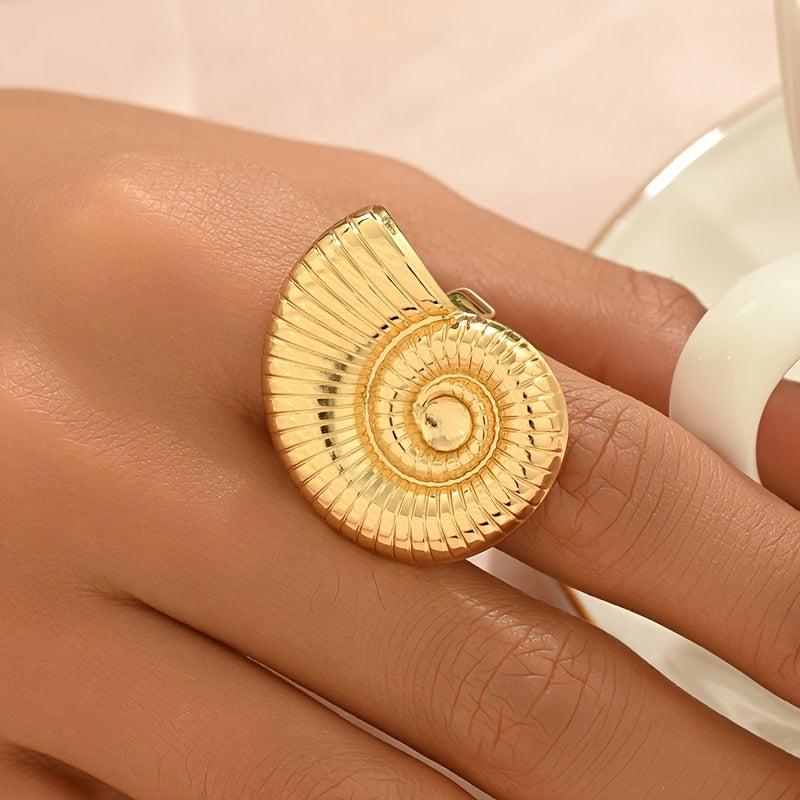 Add a touch of elegance to your look with this golden tone geometric conch ring made of durable 304 stainless steel. Suitable for daily wear, parties, or as a beach accessory.