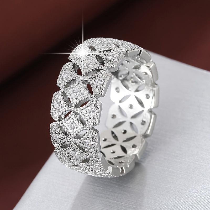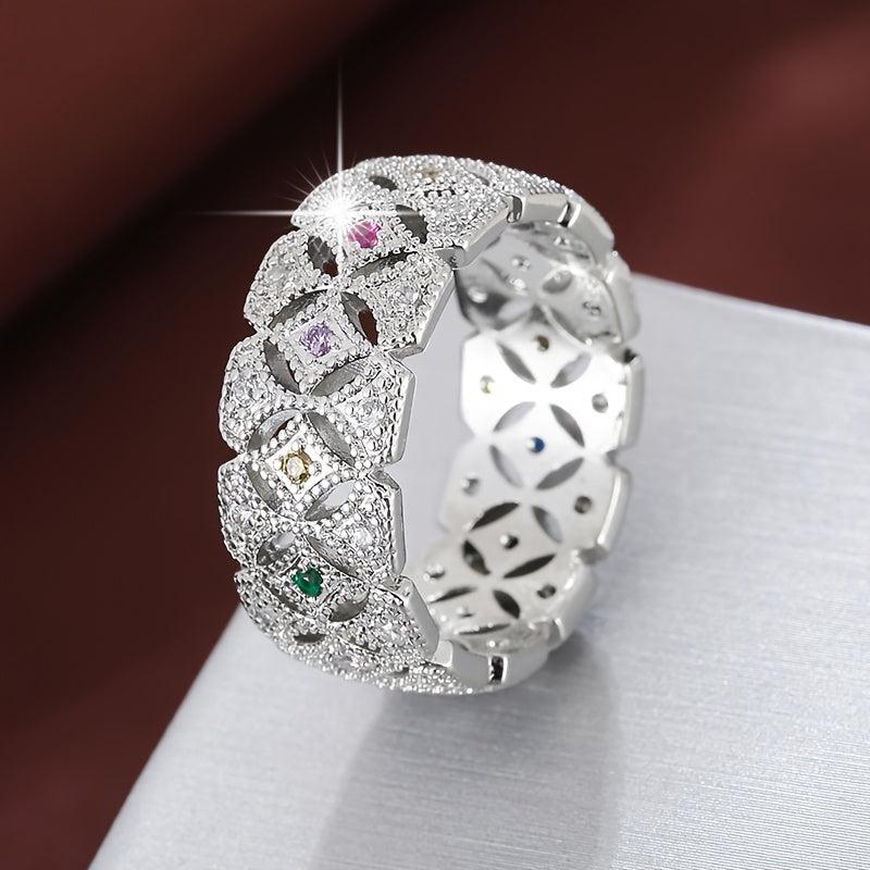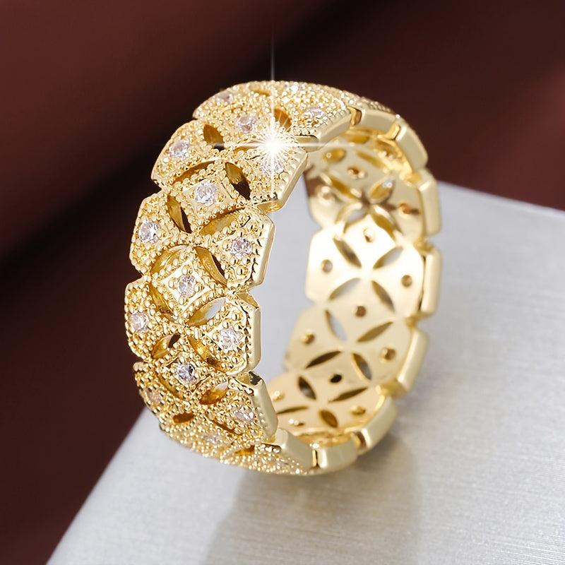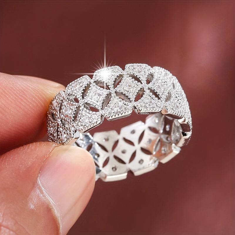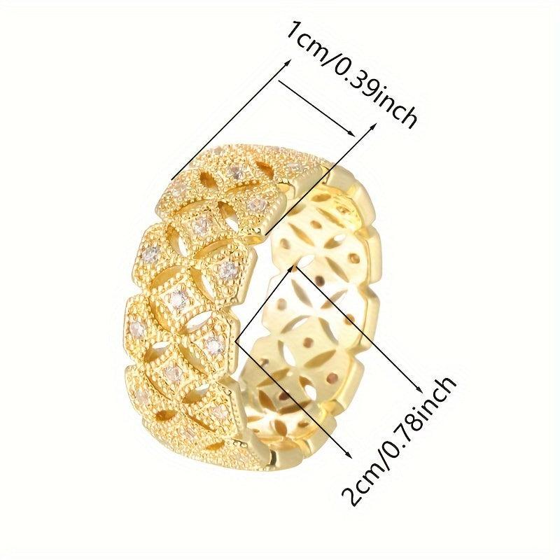 This elegant geometric copper ring with synthetic cubic zirconia is a versatile accessory perfect for daily wear or special occasions. The design is sleek and modern, adding a touch of sophistication to any outfit.