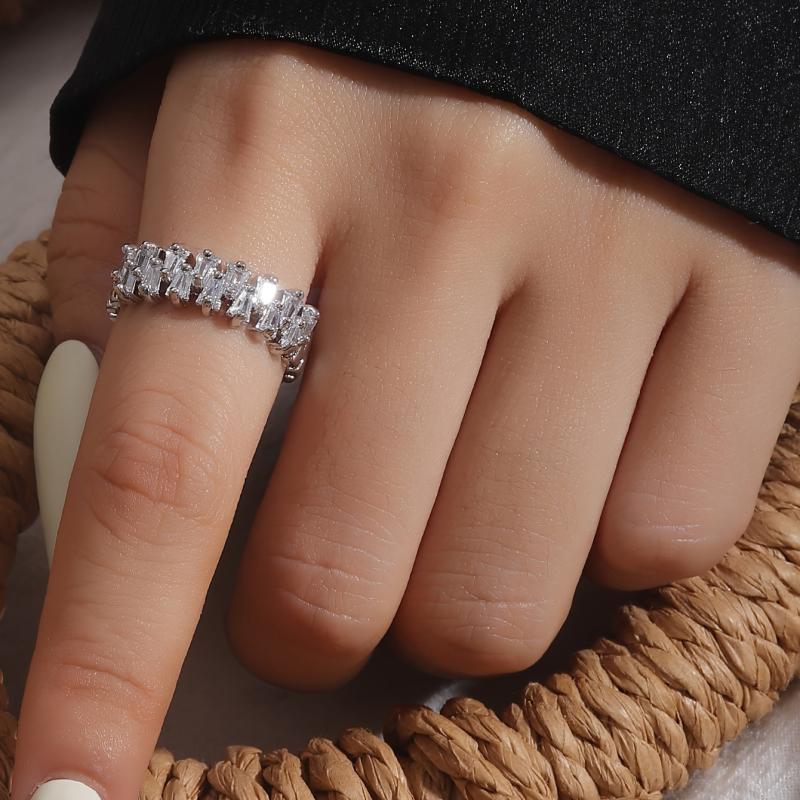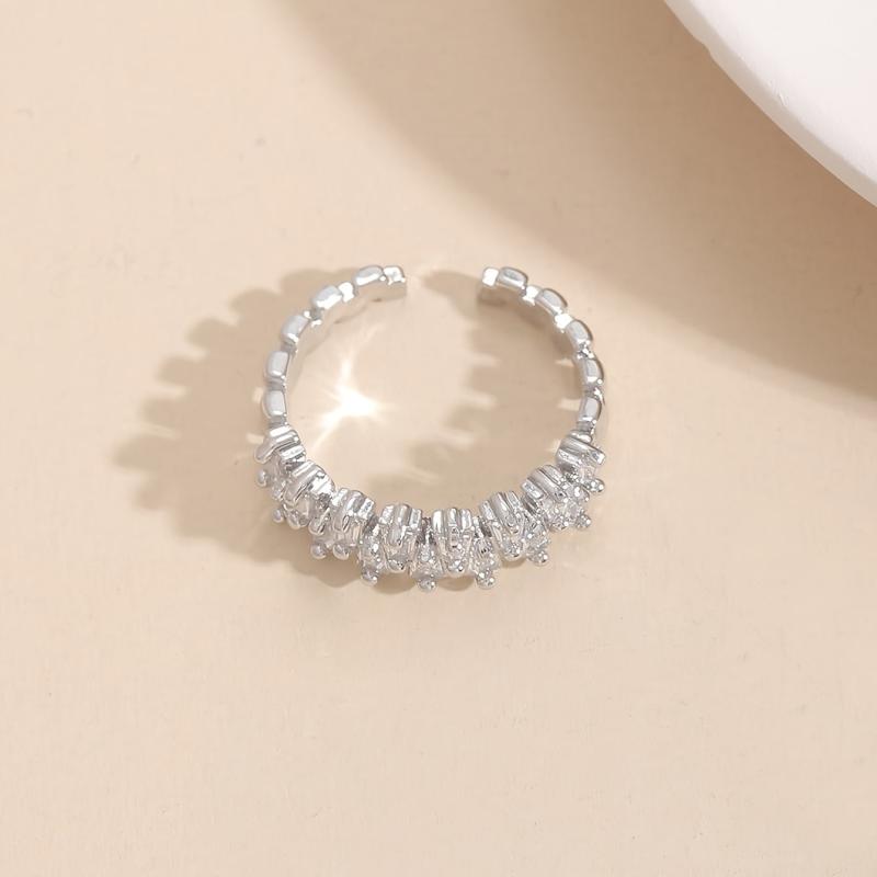 Elegant and minimalist copper ring adorned with micro set zirconia stones. This adjustable ring is perfect for women who enjoy a touch of glamour.