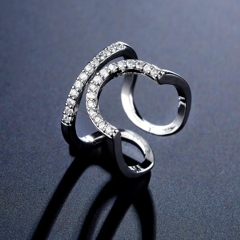 Elegant and versatile, this double layer ring features micro inlaid zirconia that adds sparkle. Perfect for daily wear or special occasions.