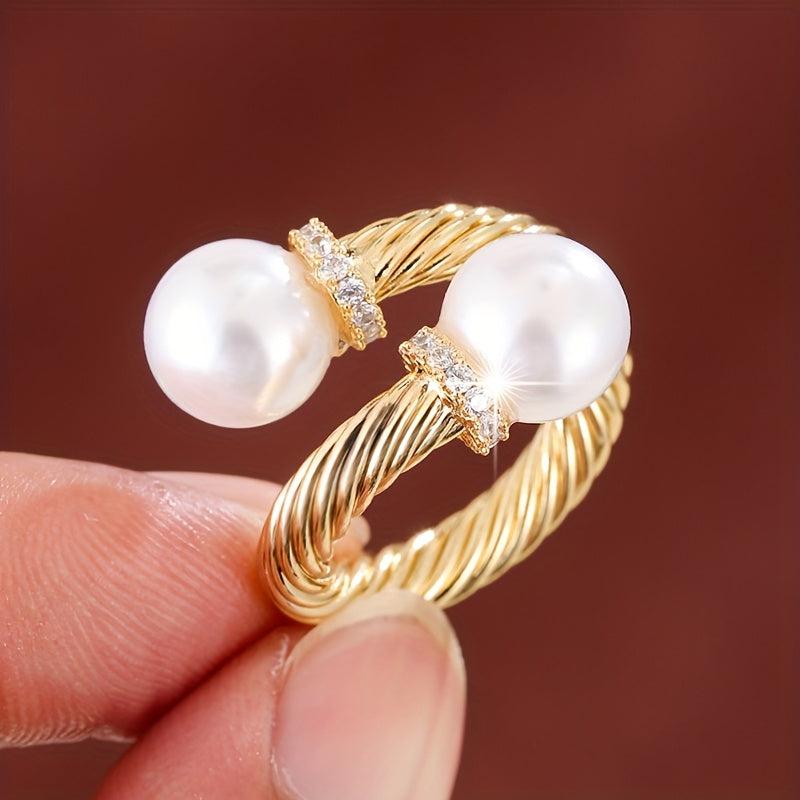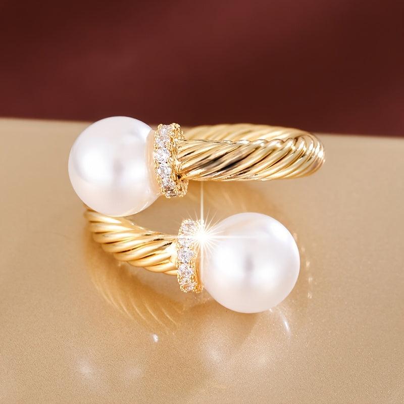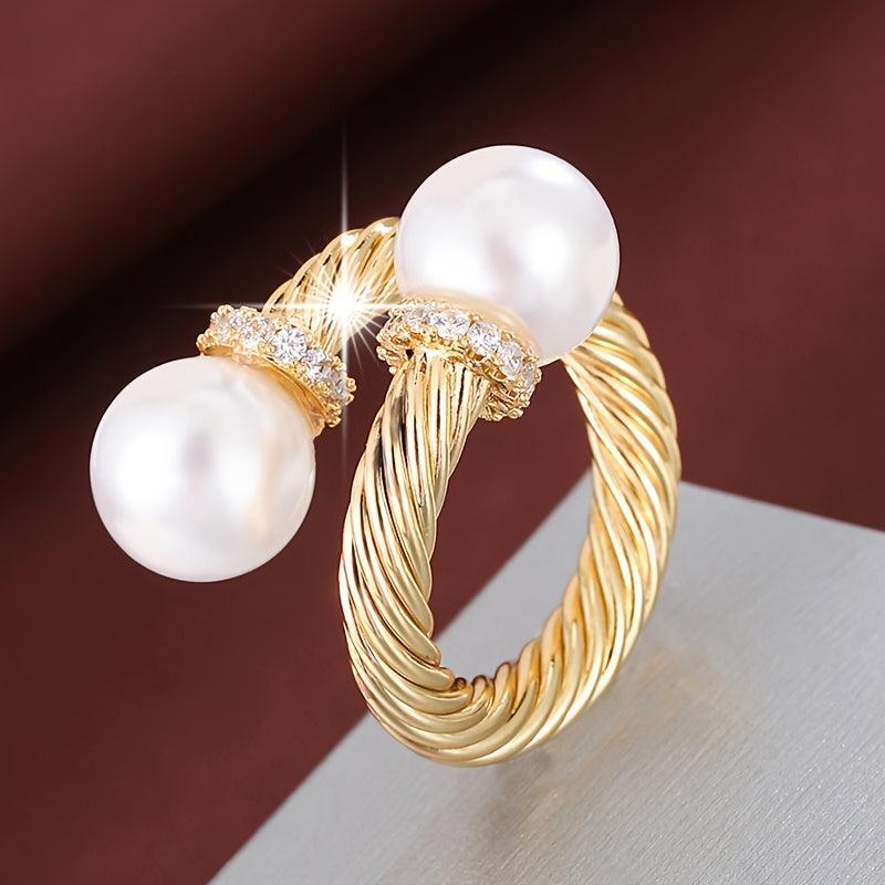 Elegant geometric open end ring with cubic zirconia in a golden tone. Perfect for daily wear or as a gift for any occasion. This ring is versatile and stylish, suitable for all seasons.