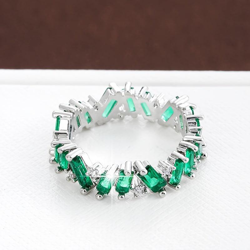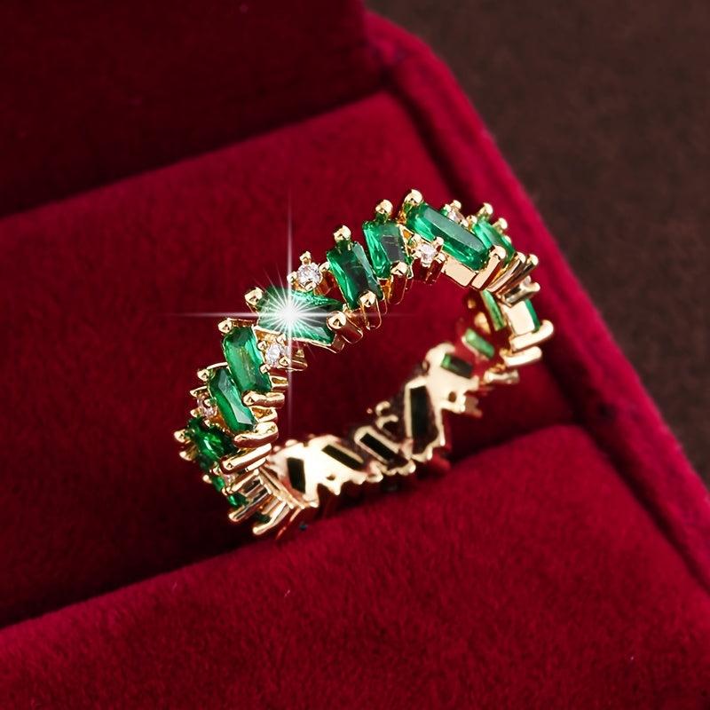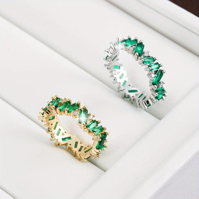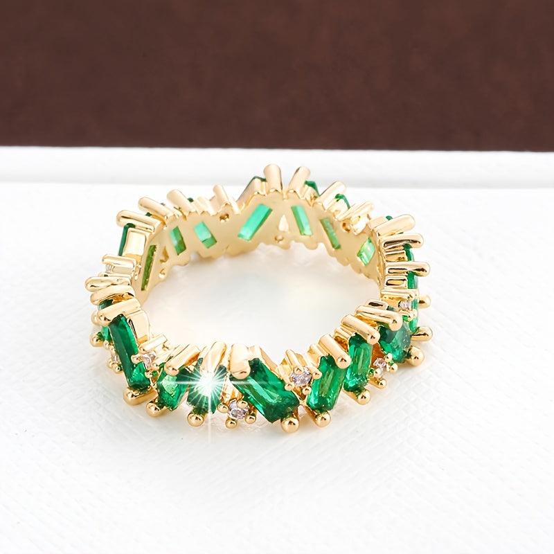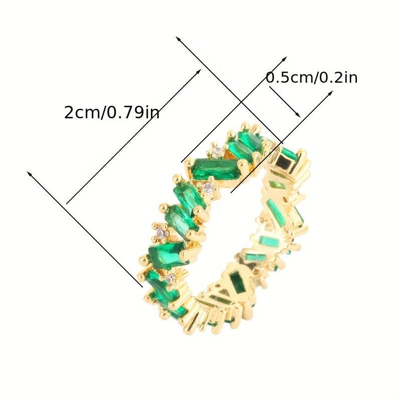 Enhance your casual attire with this geometric cubic zirconia ring featuring green and golden accents on a copper band. Perfect for adding a touch of elegance to your everyday look.