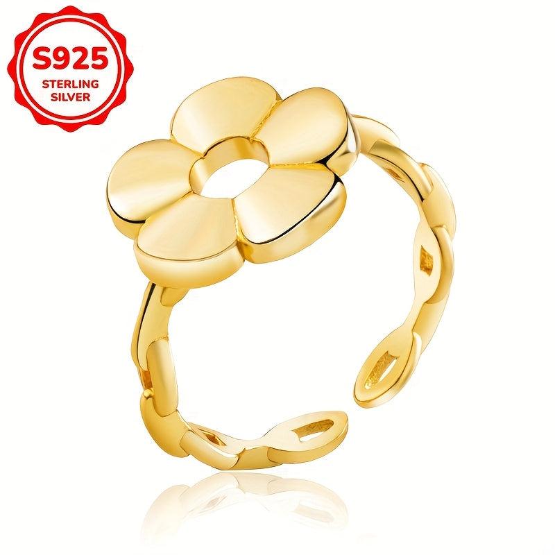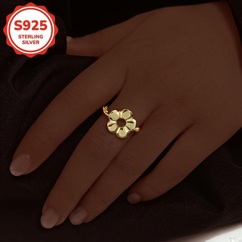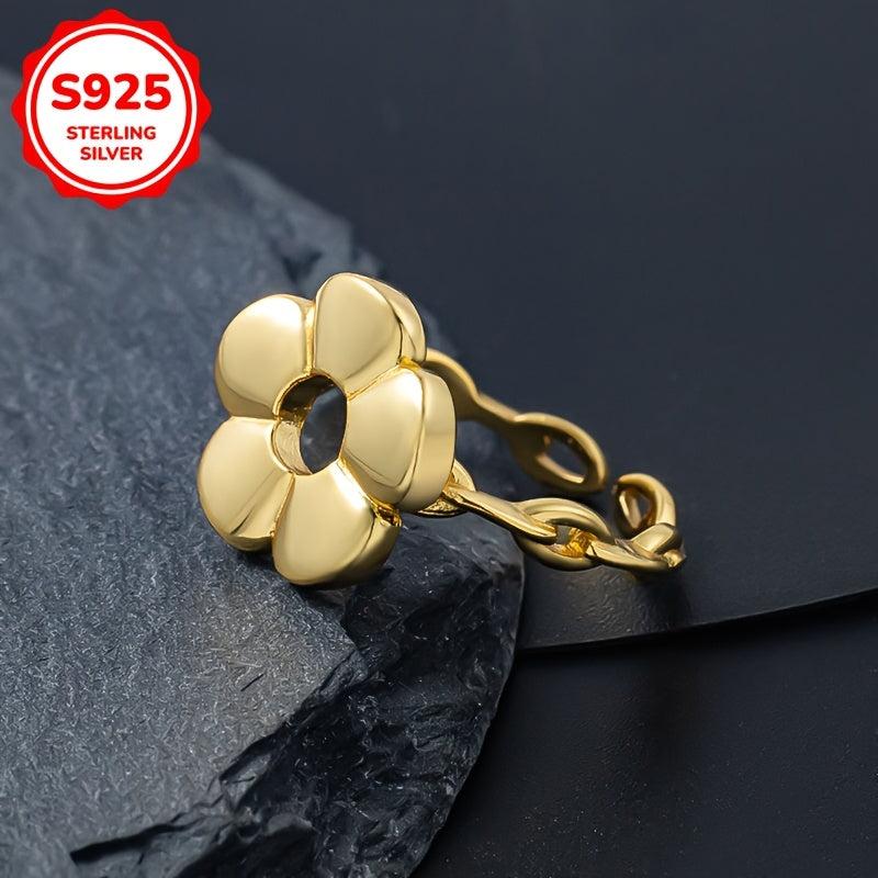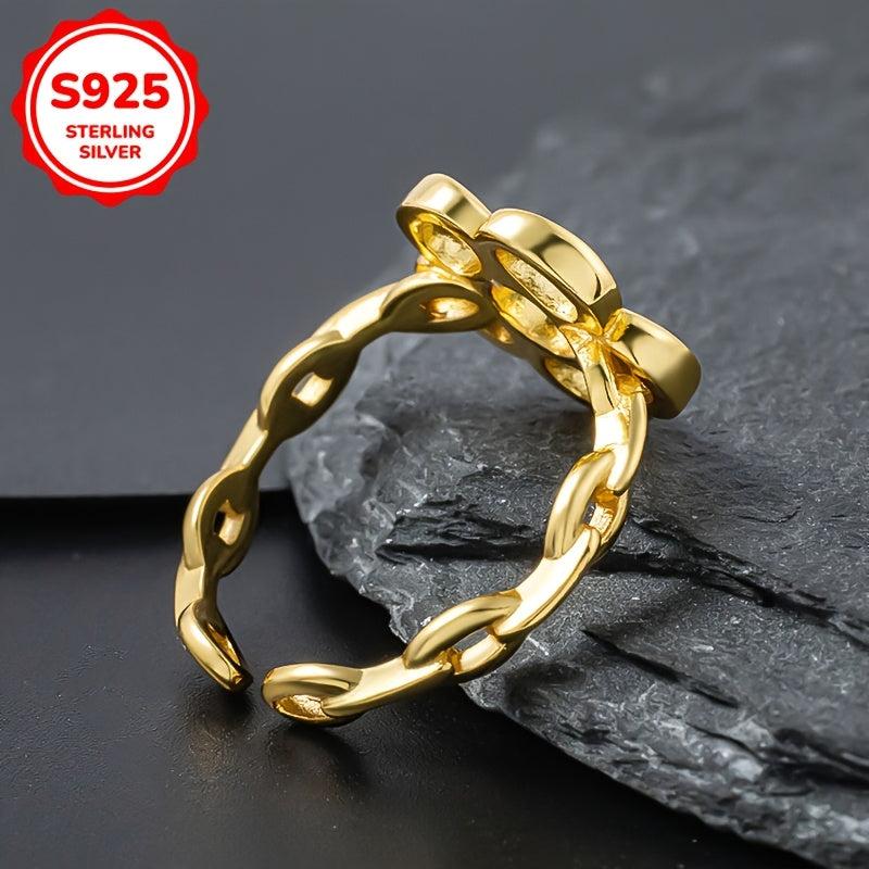 Elegant lady's ring featuring a geometric chain flower design. Made of 925 silver, 3g weight, suitable for daily wear or vacation. Anti-allergy material ensures comfort. Ideal for holiday gifting.