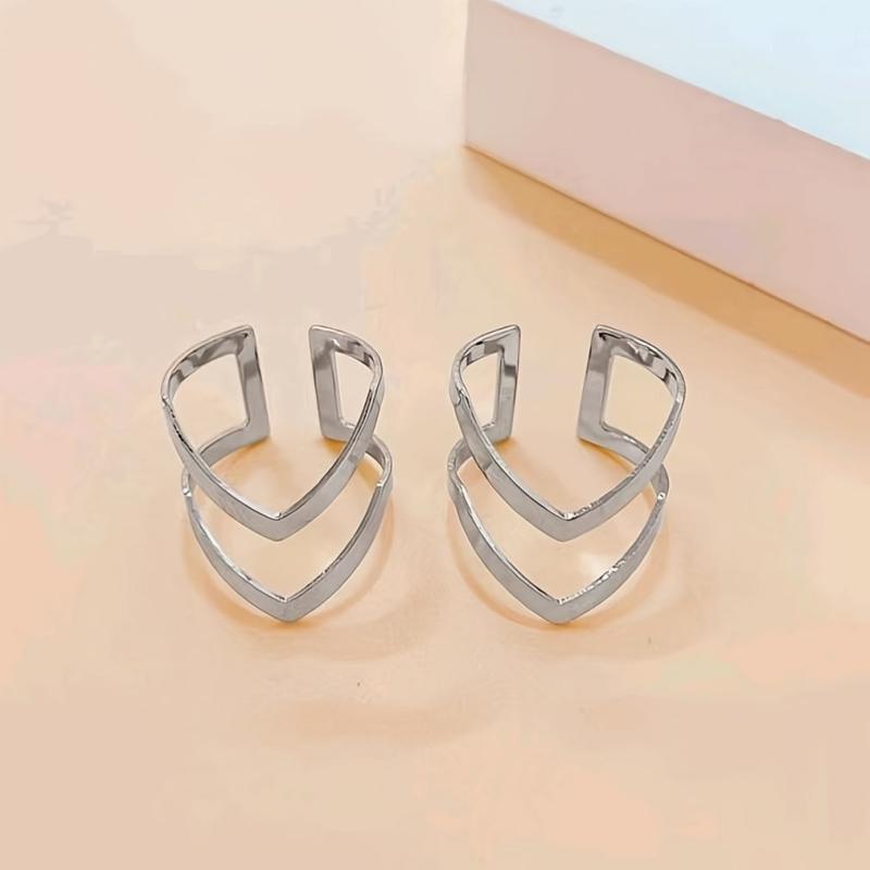 Add a touch of edgy elegance to your look with this geometric hollow out open ring. Made of alloy, this monochrome metal feeling finger ring is a stylish accessory for any outfit.