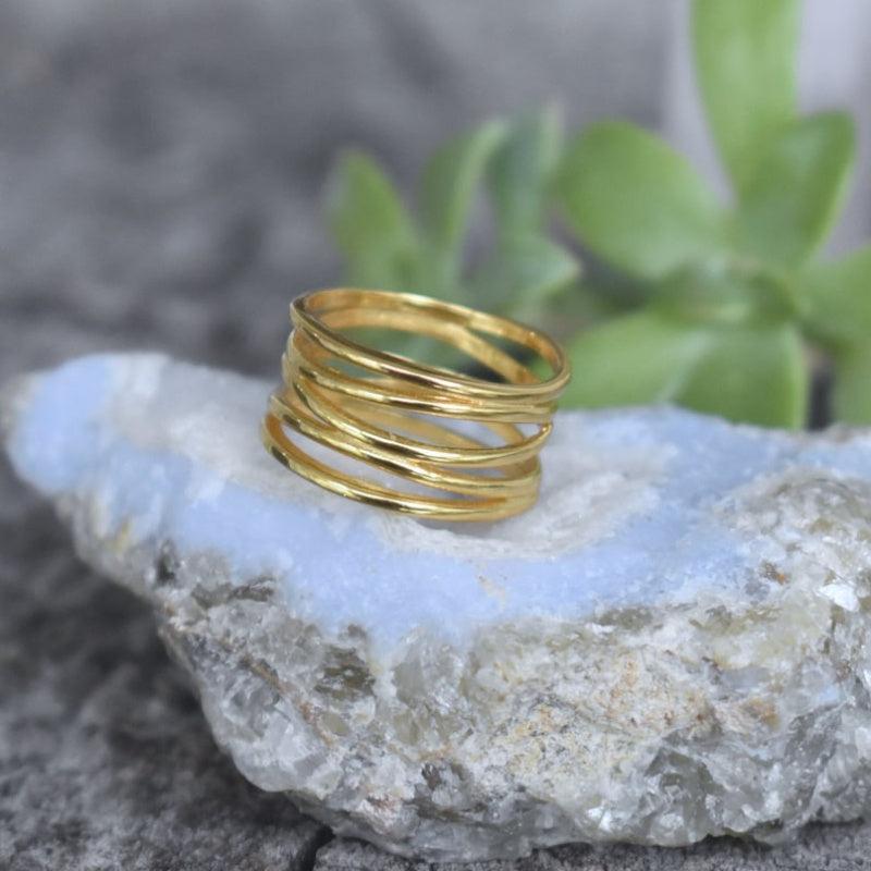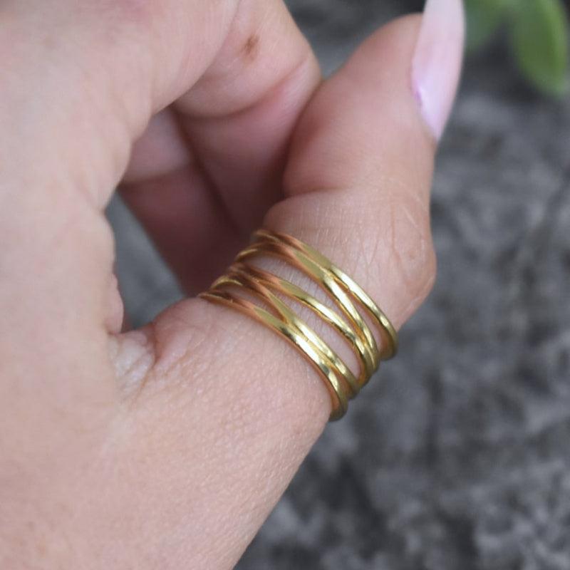 This geometric line ring is crafted with layered golden tone metal, making it perfect for weddings, engagements, parties, or daily wear. Available in sizes 6 to 11, this versatile ring is a stylish addition to your jewelry collection.
