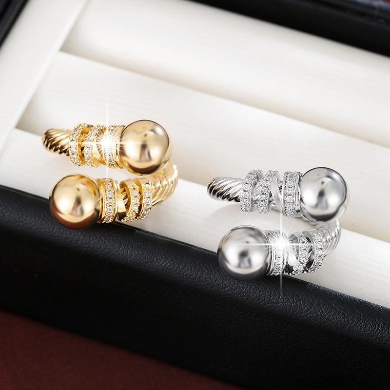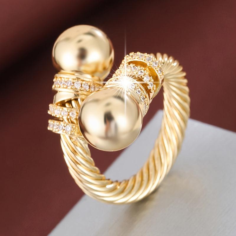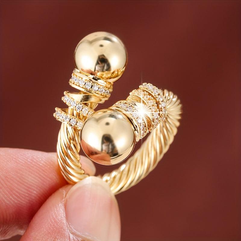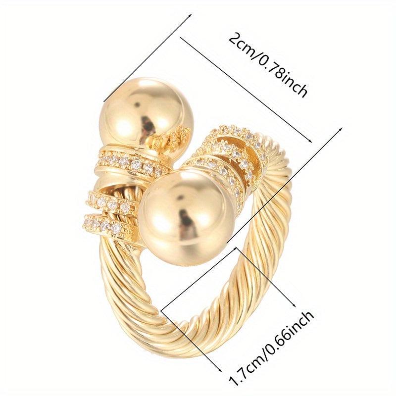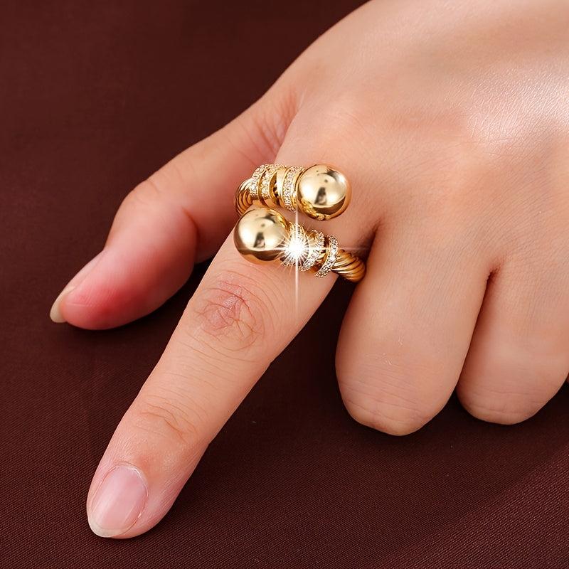 Geometric Line Zirconia Open Ring Golden Plated