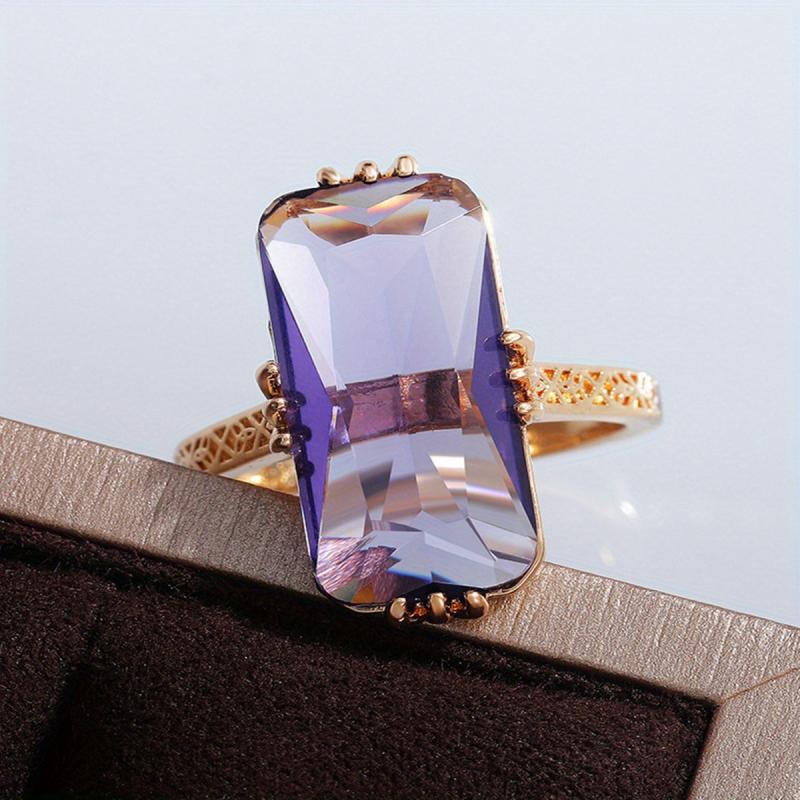 Elegant geometric ring crafted from copper with synthetic cubic zirconia, ideal for weddings, engagements, and parties.