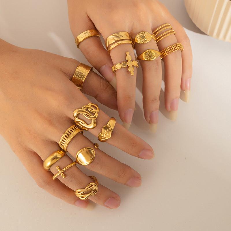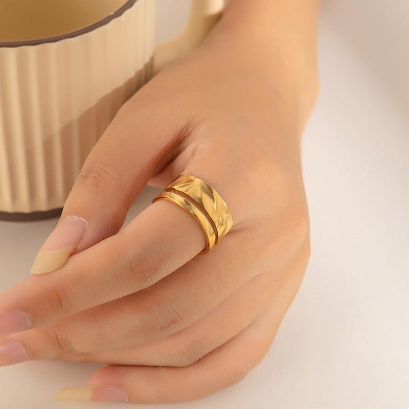 Add a touch of modern elegance to your look with this geometric ring. Made from titanium steel with 18K golden plating and irregular cut design, this ring is a must-have accessory.