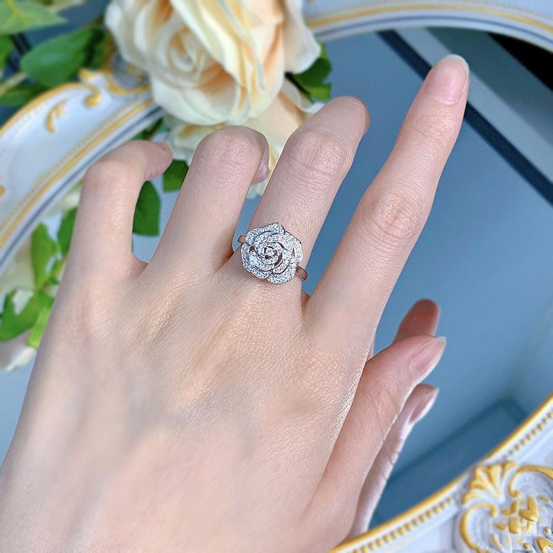 Add a touch of elegance to your ensemble with this stunning geometric rose flower ring. Perfect for weddings, engagements, and parties, this accessory is a must-have for any jewelry collection.
