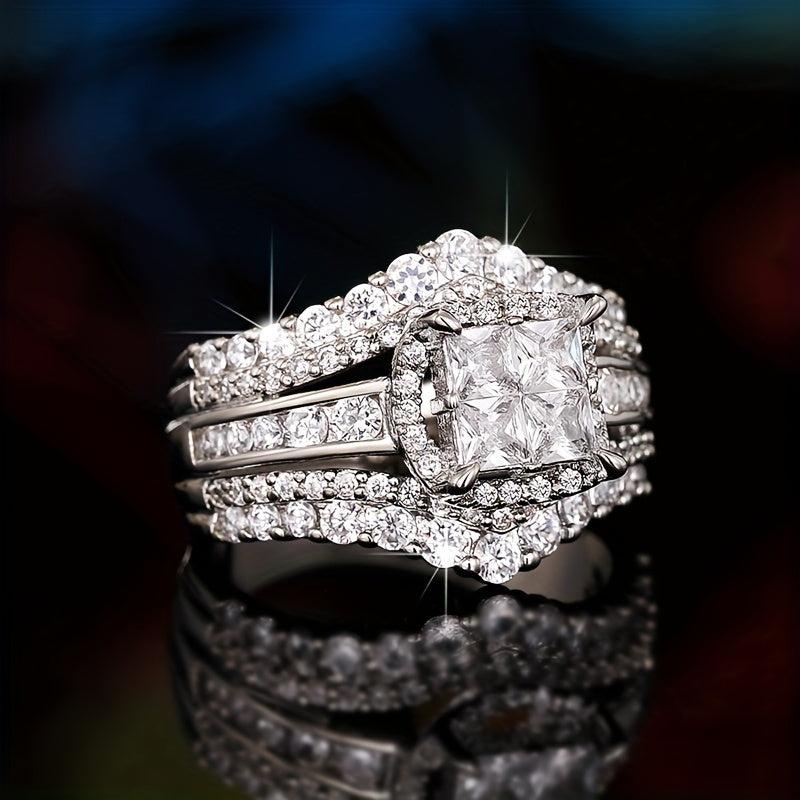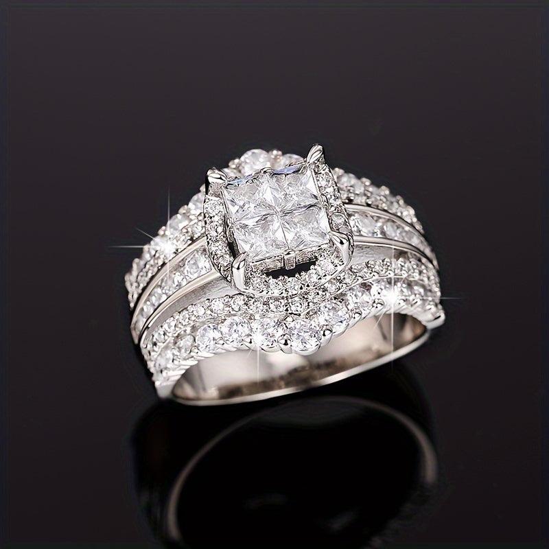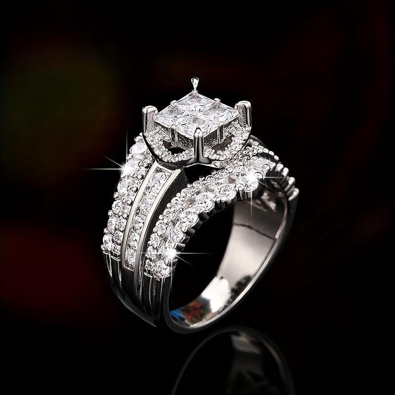Elegant double layer ring with micro inlaid zirconia, perfect for daily wear, parties, and banquets. A stylish jewelry accessory.