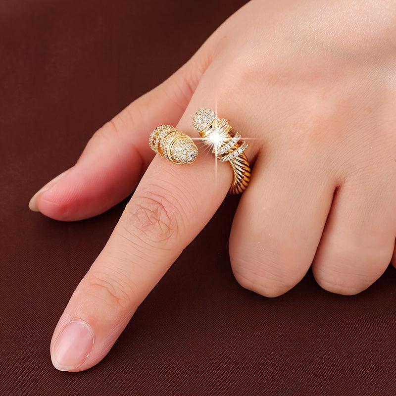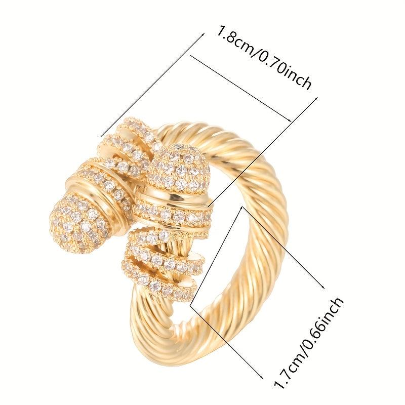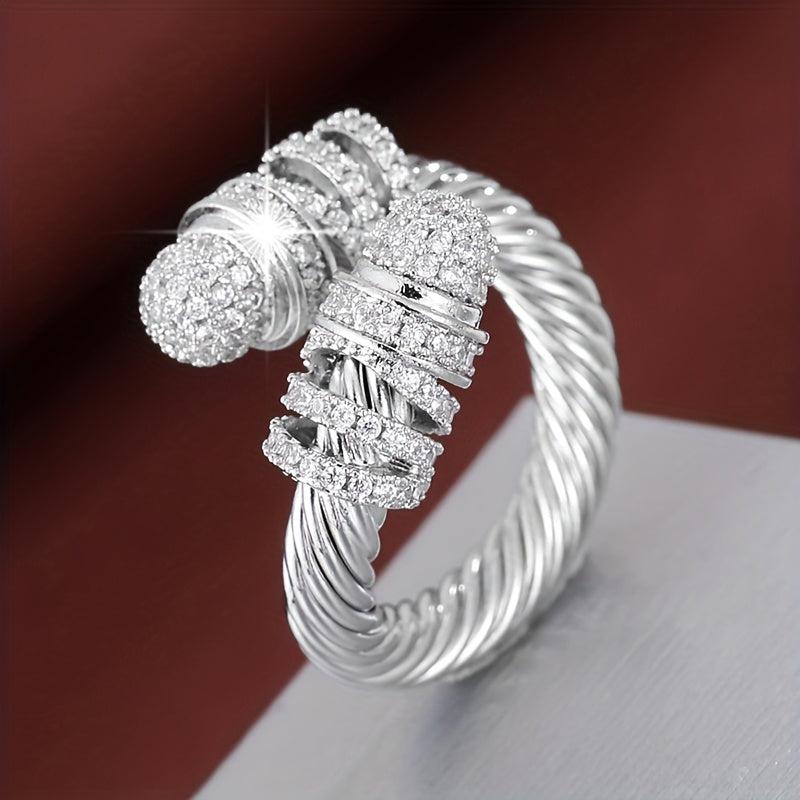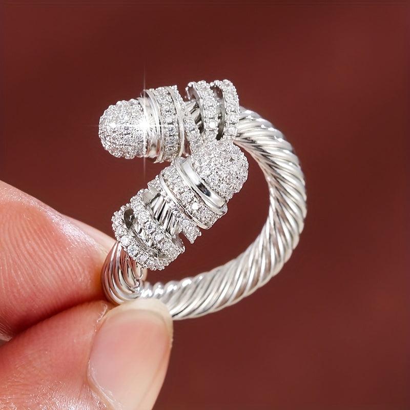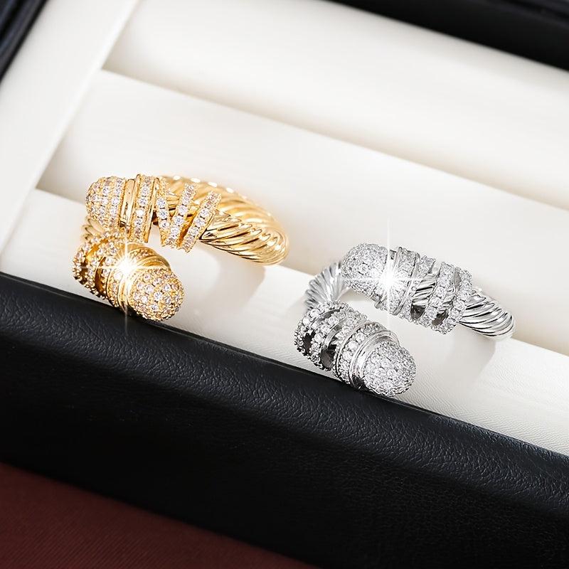 Elegant and stylish open ring featuring a geometric design with zirconia inlays, perfect for adding a touch of glamour to any outfit.