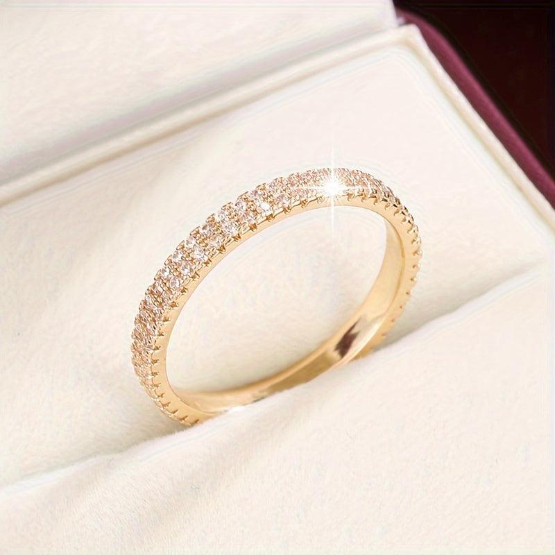 Add a touch of elegance with this geometric ring featuring synthetic zirconia. Perfect for any occasion.
