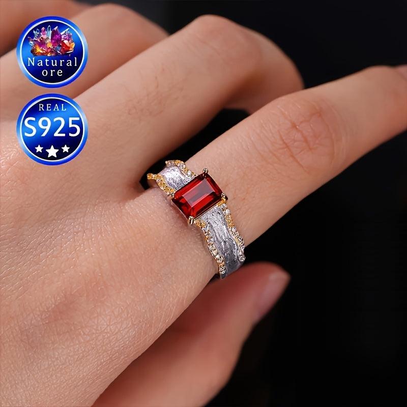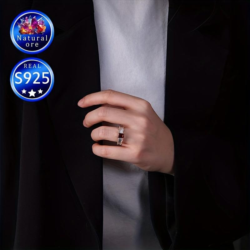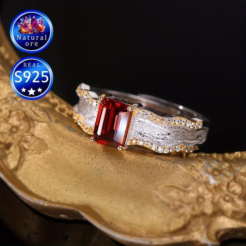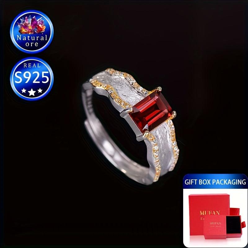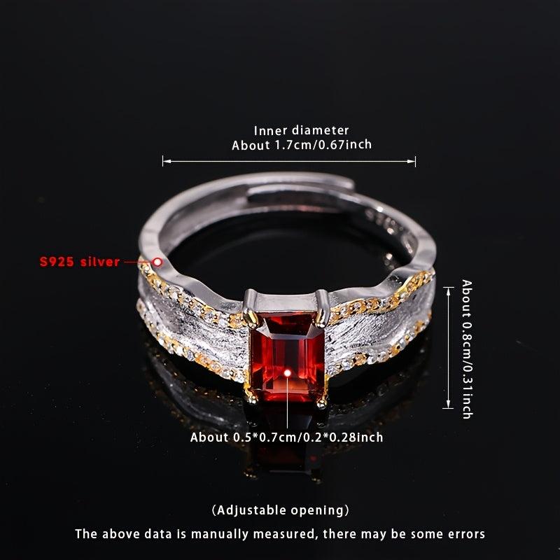 This beautiful red garnet gemstone ring is made of S925 silver and comes in a gift box. The adjustable opening allows for a perfect fit and the vintage design adds a touch of elegance to your look. A great wedding accessory or gift for her, each ring is unique due to natural ore differences in lightness and color.