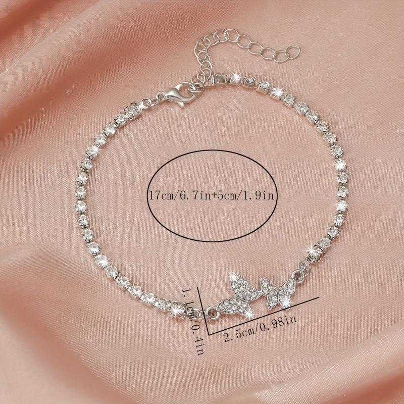 Elevate your style with this stunning butterfly rhinestone bracelet. Perfect for daily wear or vacation accessorizing, this piece is suitable for all seasons. Give the gift of spring with this exquisite bracelet.
