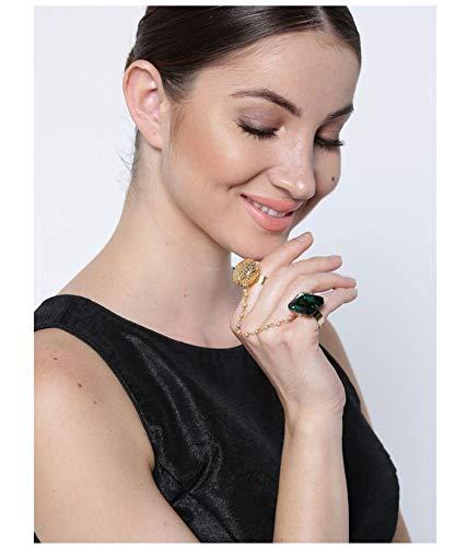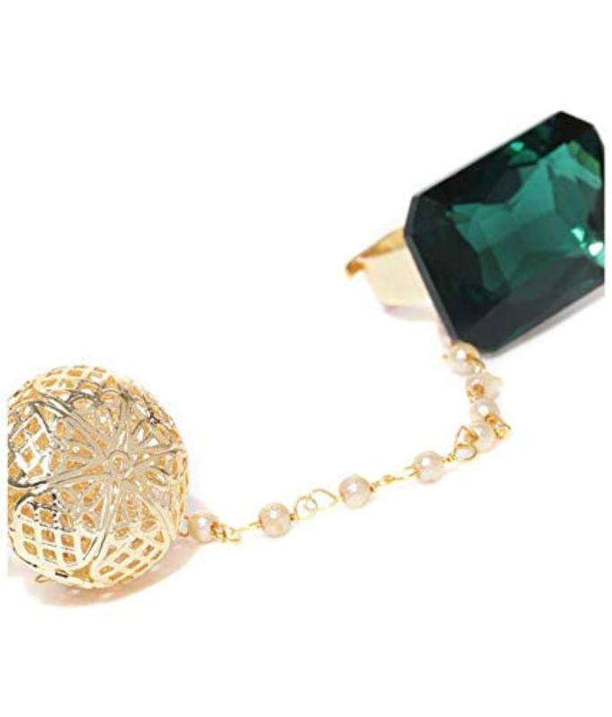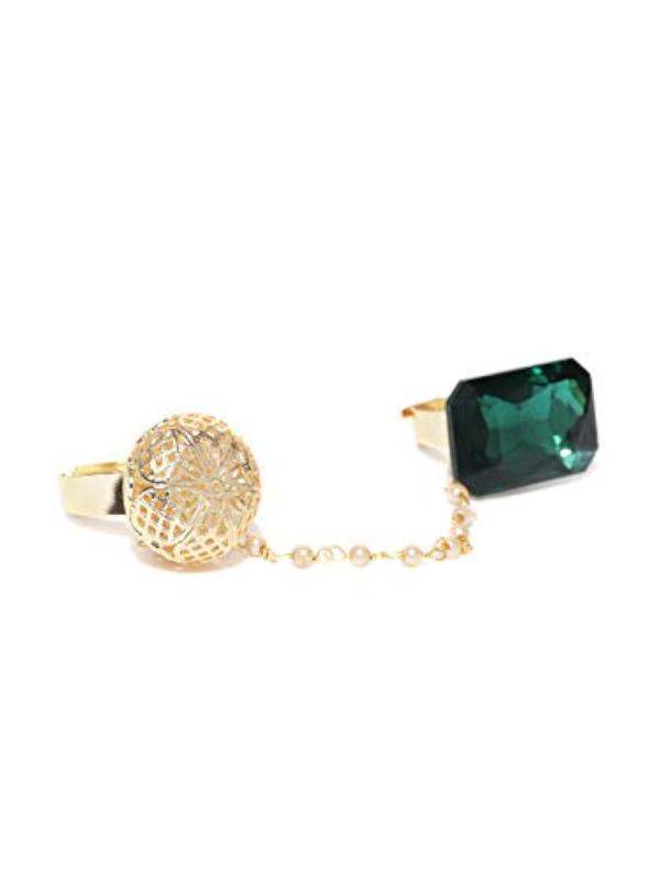 Add a touch of elegance with this gold-toned heart-shaped ring adorned with stones. Adjustable to fit two fingers.