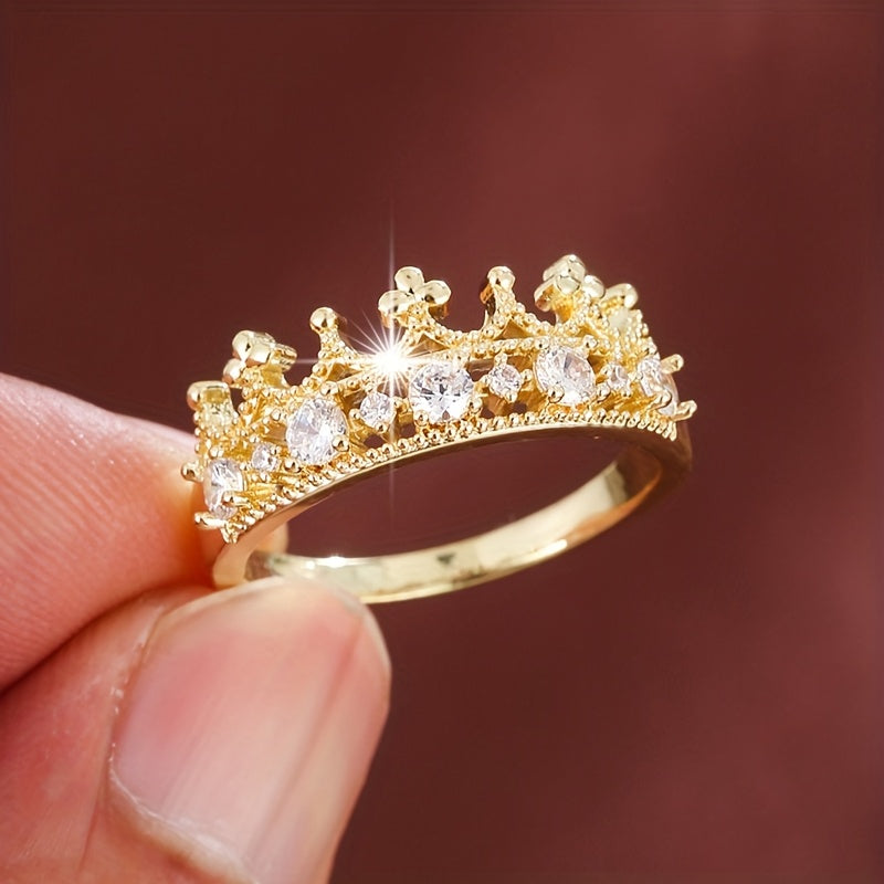 Add a touch of royalty to your look with this crown ring featuring sparkling cubic zirconia. Perfect for parties or everyday glam.