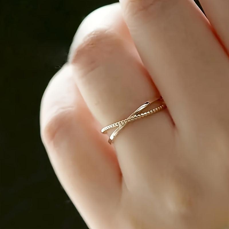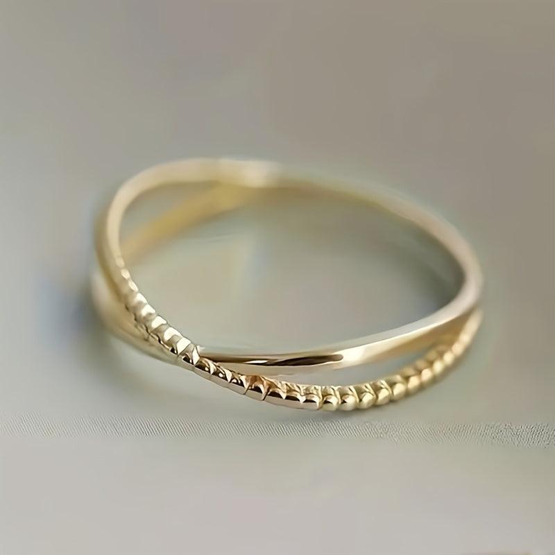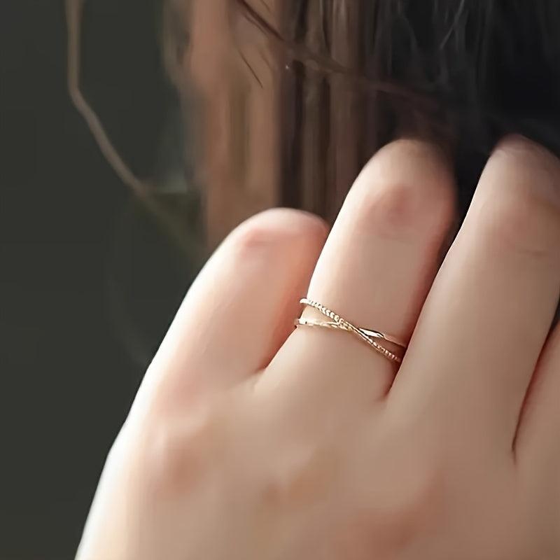 This stunning eternity ring features intertwining golden bands, making it a timeless and elegant piece of jewelry. Perfect for engagements, weddings, or everyday wear. A great gift for Valentine's Day or any special occasion.