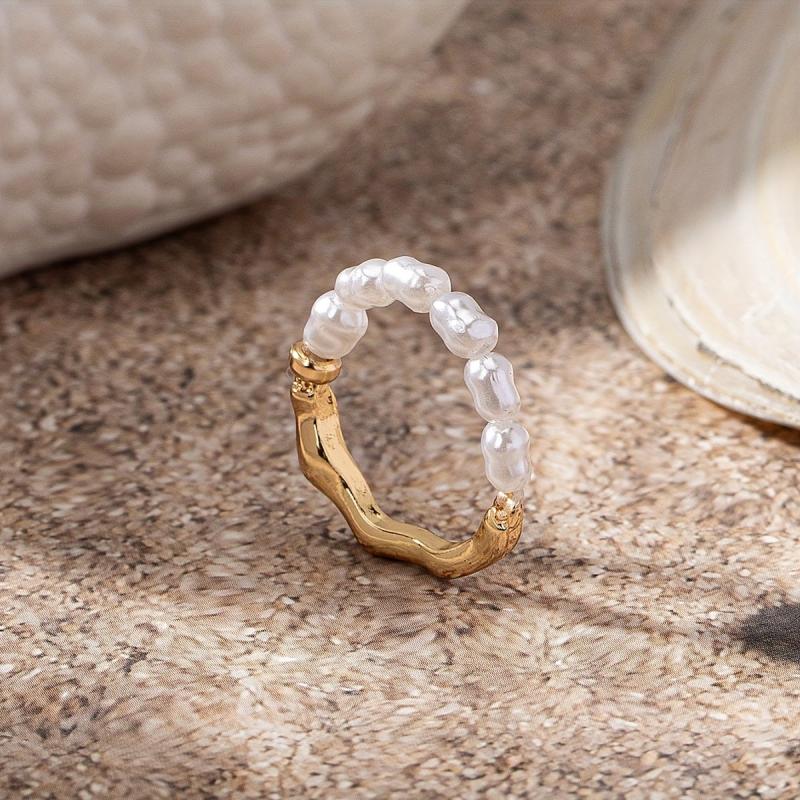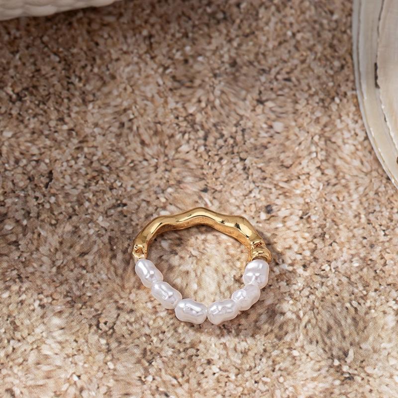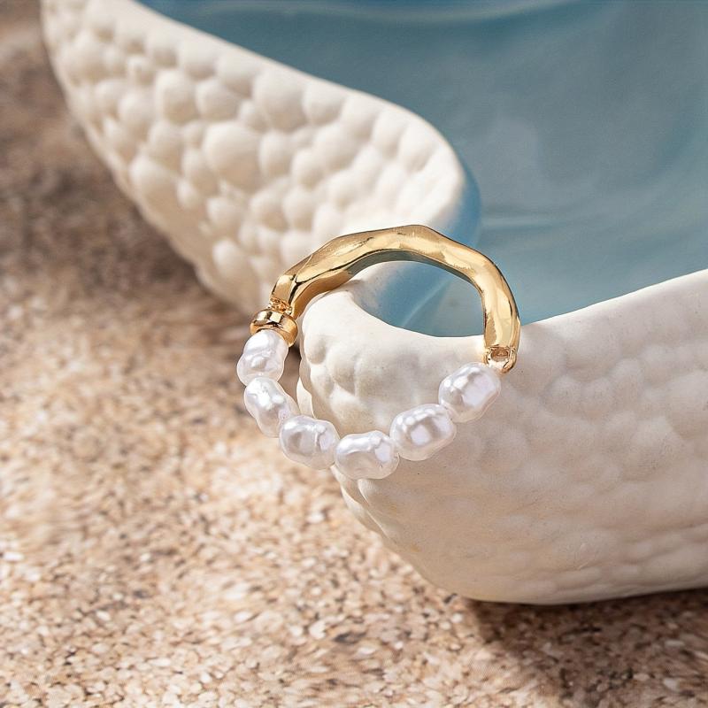 This zinc alloy stretch ring features an irregular faux pearl in a timeless design. Perfect for Mother's Day, weddings, and anniversaries.
