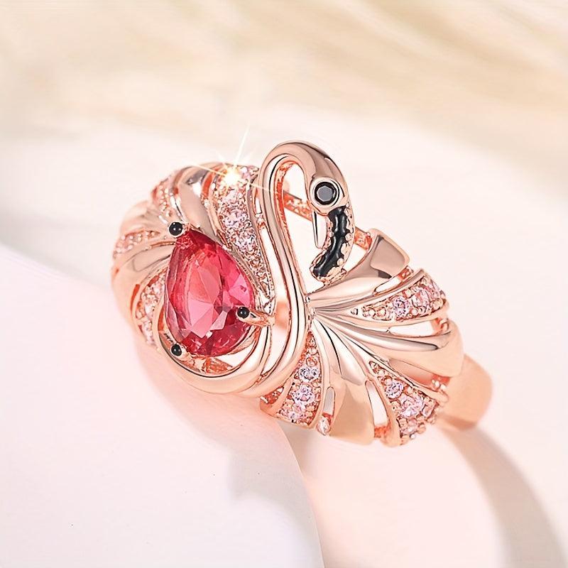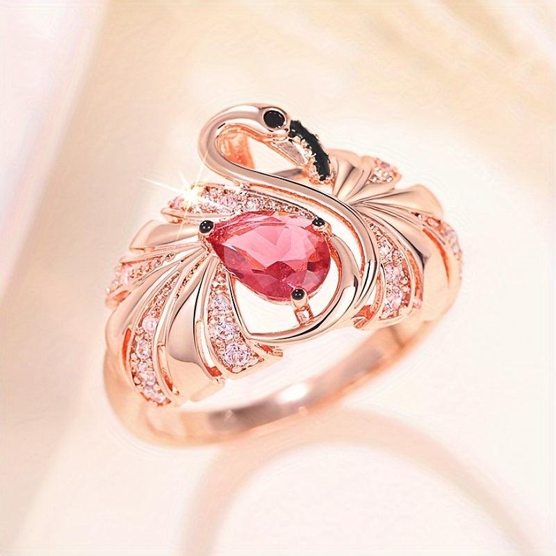 Elevate your style with this classic golden flamingo ring crafted with sparkling zirconia, a delicate accessory perfect for daily wear or vacation.