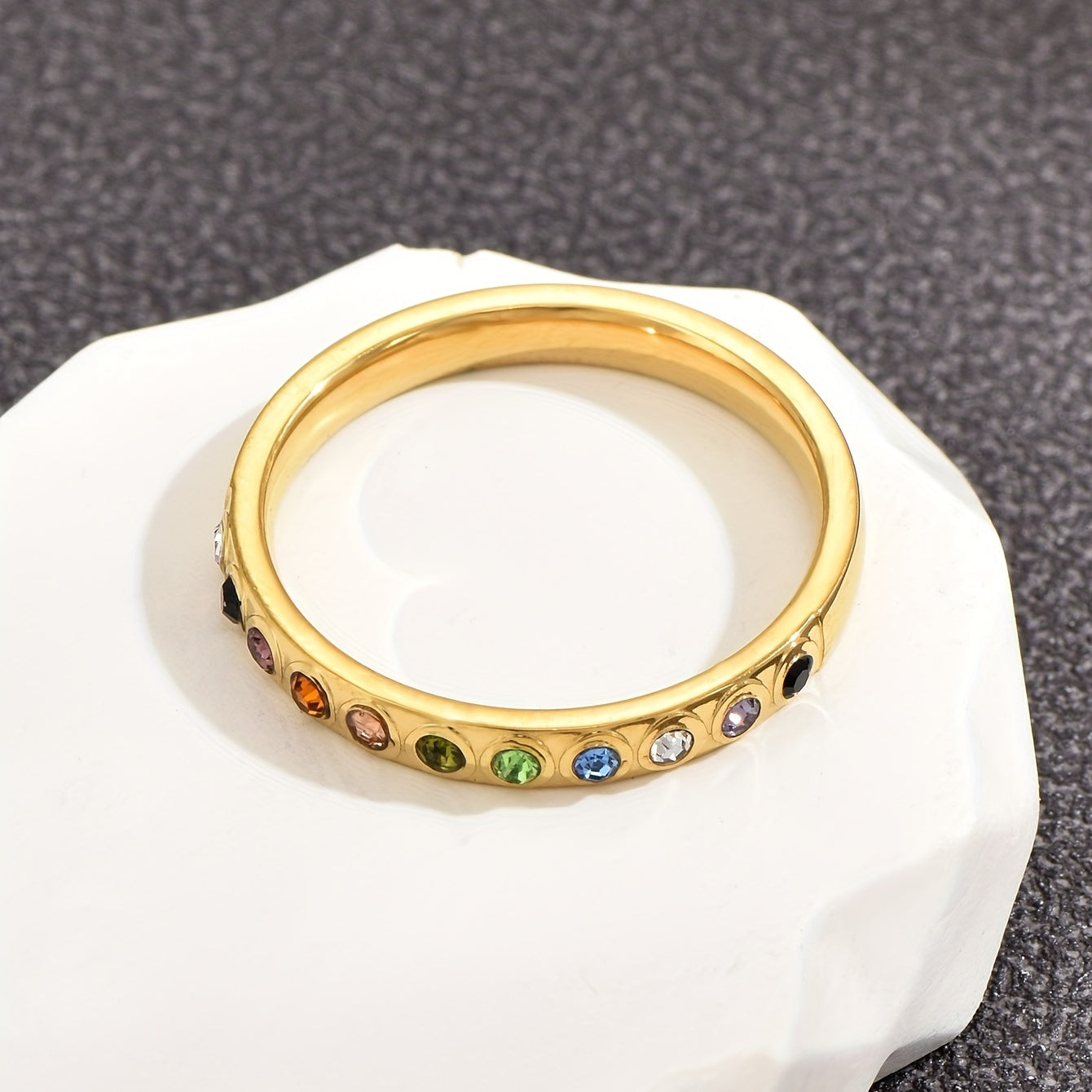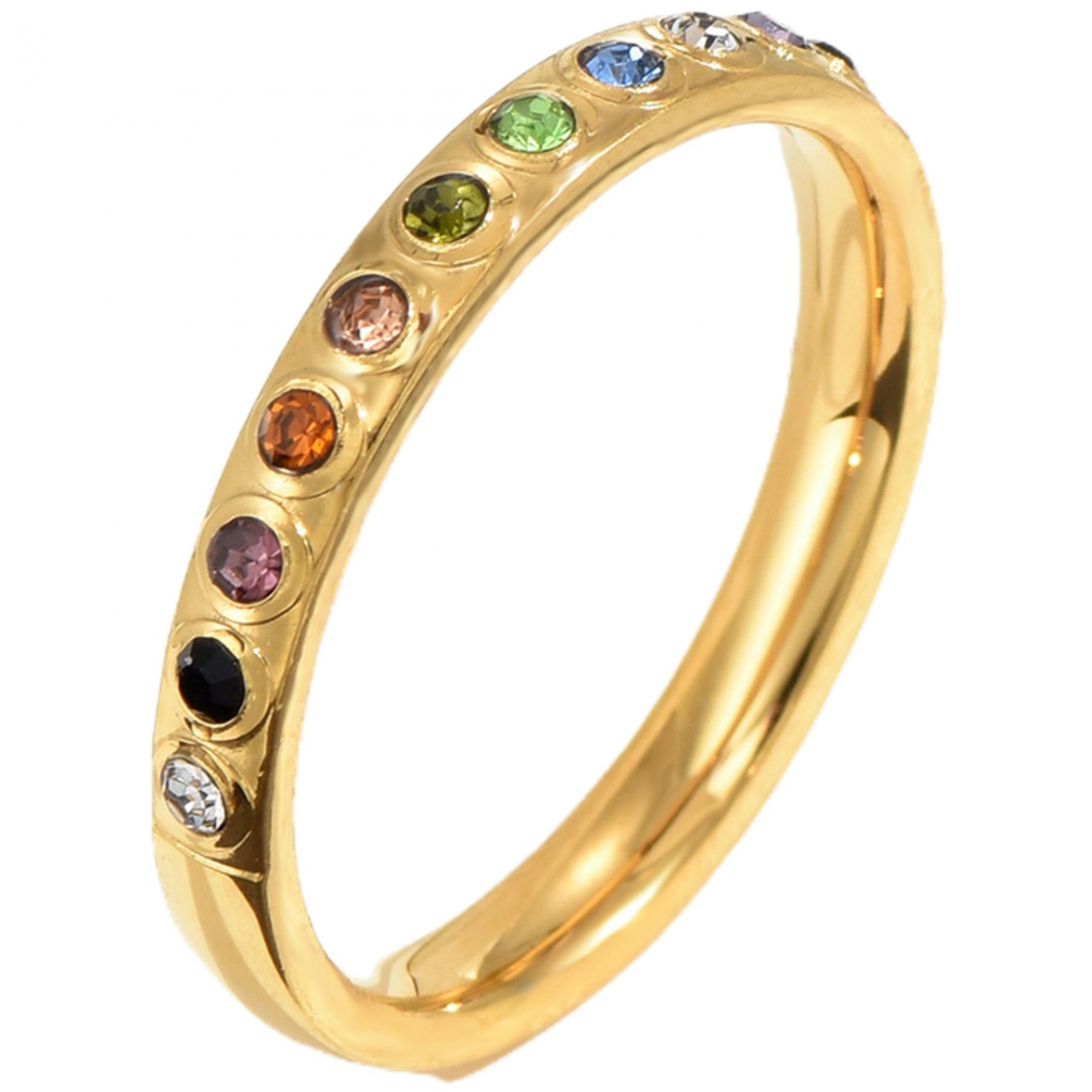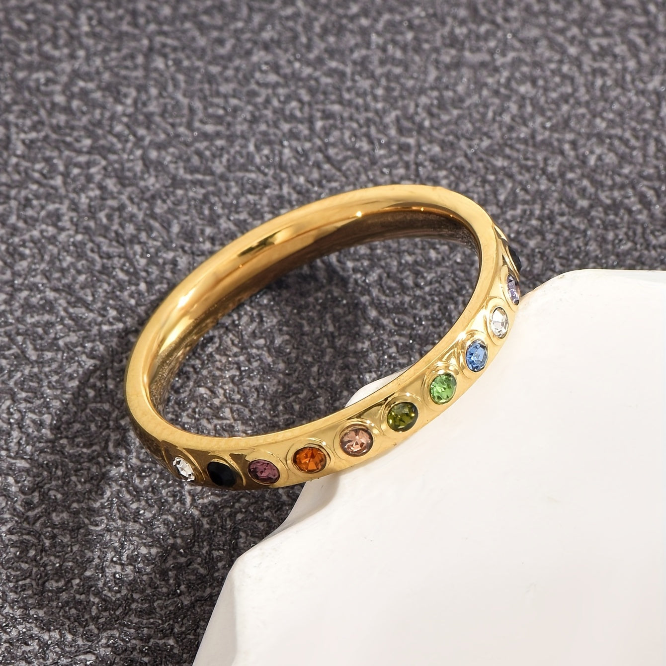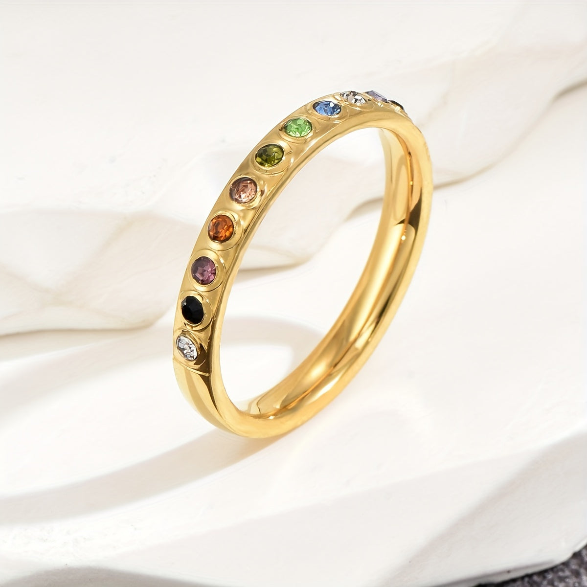 Elegant men's ring with colorful zircon stones. Titanium steel plated in 14k gold.