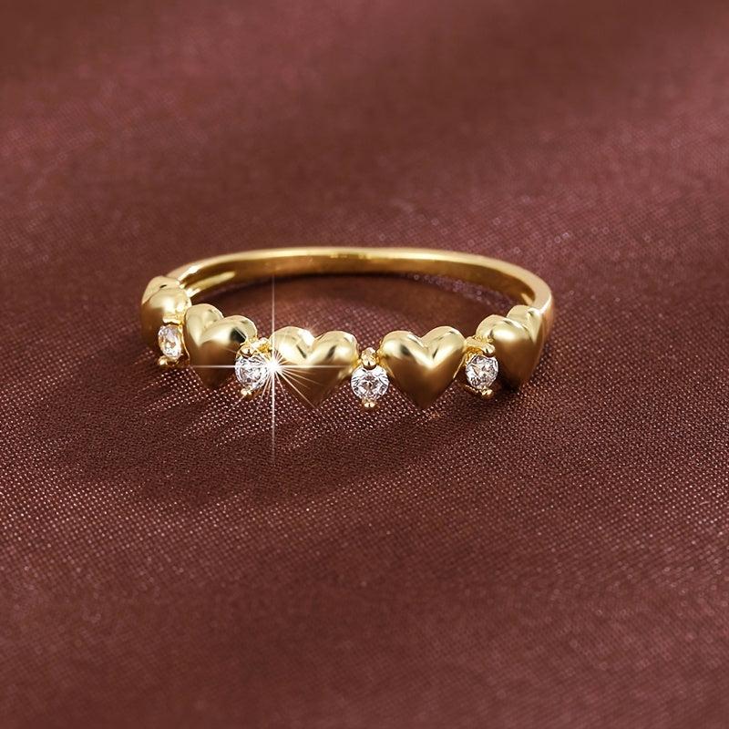This beautiful golden plated heart ring with CZ stones is perfect for daily wear or special occasions. Add a touch of elegance and style to your outfit with this stunning piece.