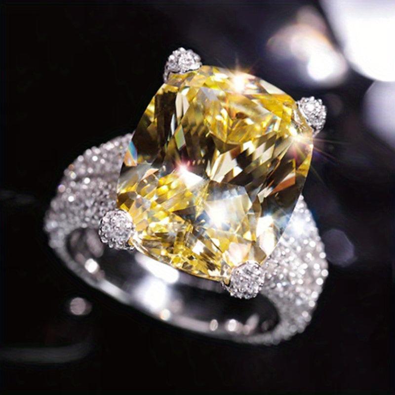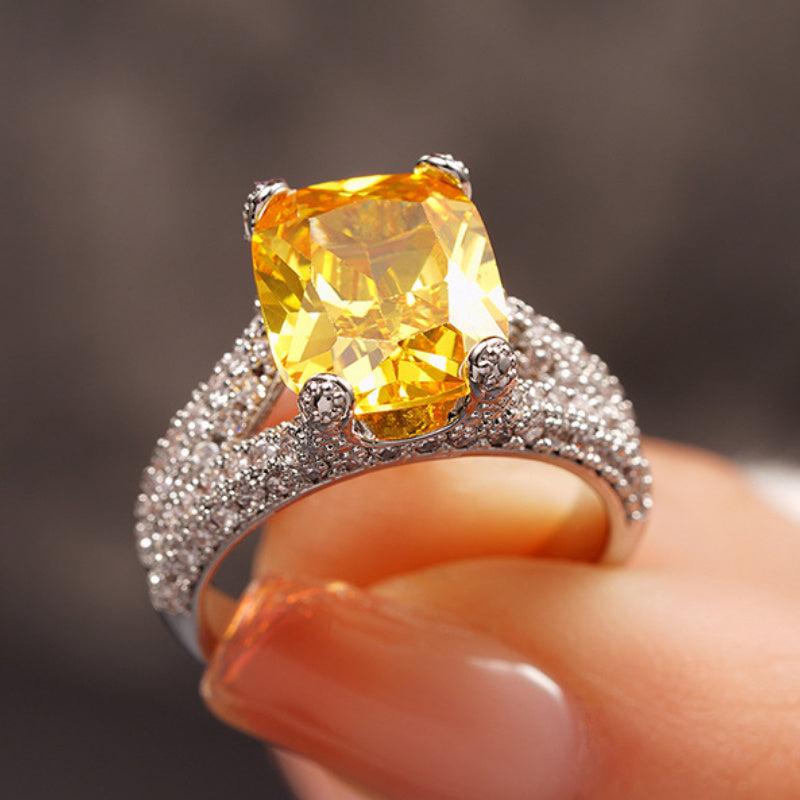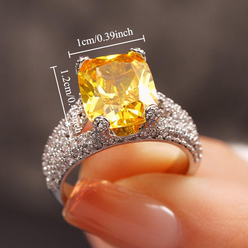 This stunning ring features a yellow synthetic cubic zirconia, making it perfect for engagement, anniversary, or cocktail parties. It is the birthstone for November, adding a touch of elegance to your holiday style.