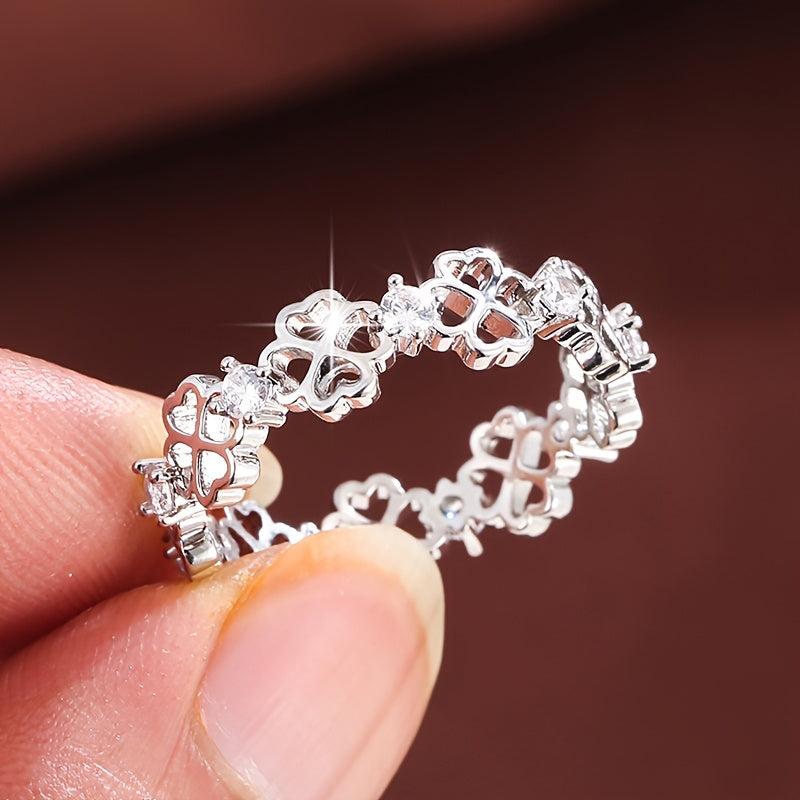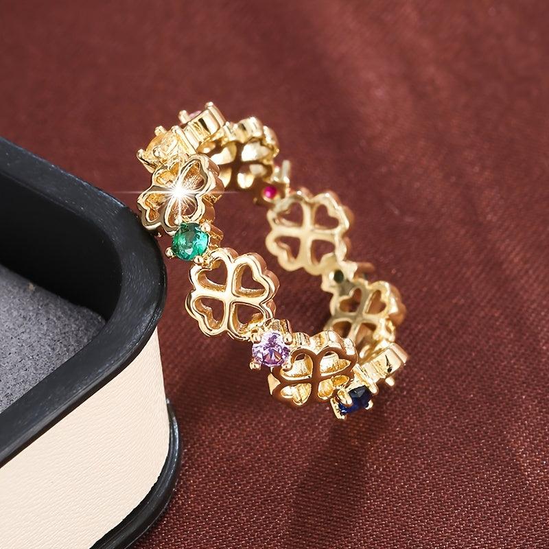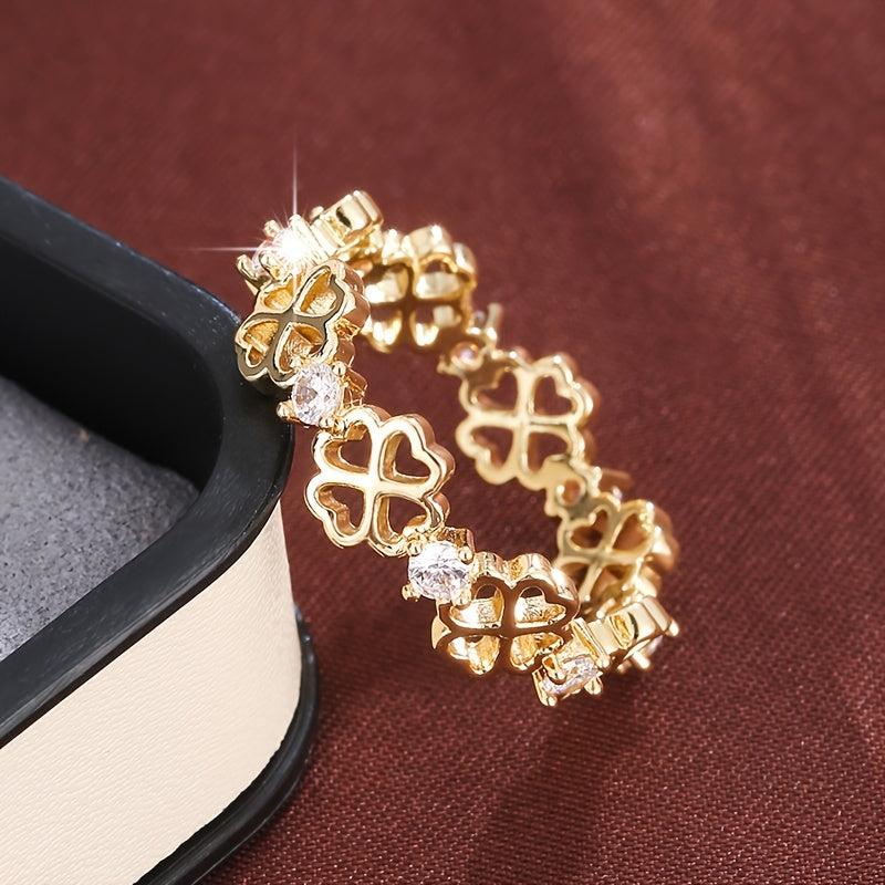 This elegant ring features a golden plated hollow petal design with sparkling cubic zirconia accents. A perfect accessory for daily wear, adding a touch of elegance to any outfit.
