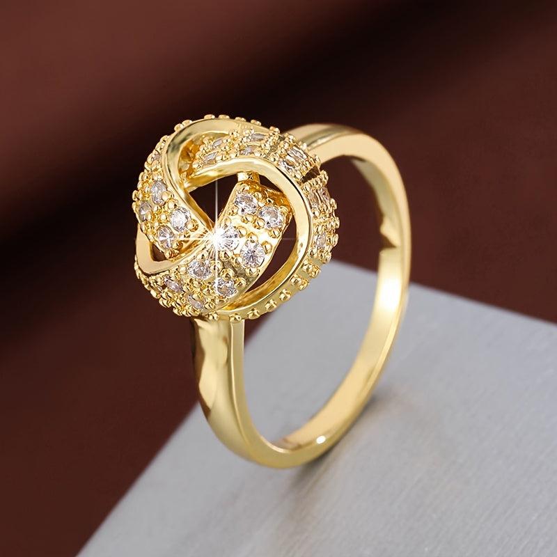 Elegant women's ring featuring interlocking circles with synthetic zirconia stones. Perfect for adding a touch of sparkle to casual outfits or as a thoughtful gift.