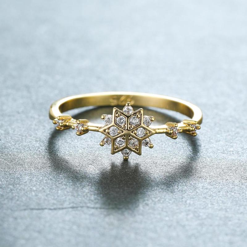 Make your special day even more memorable with this exquisite golden snowflake zirconia ring. Perfect for brides on their wedding day or as a gift for an anniversary or Valentine's Day.