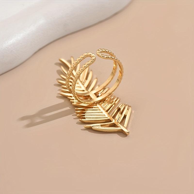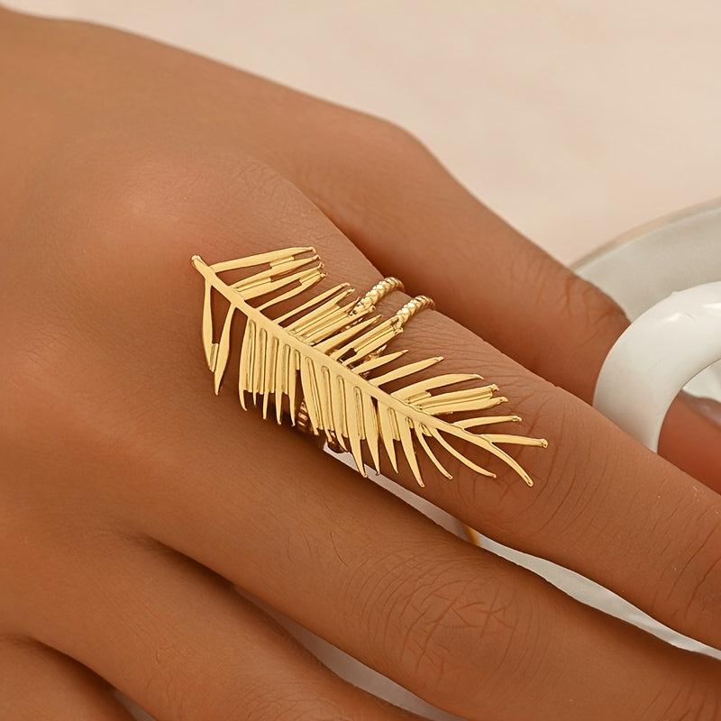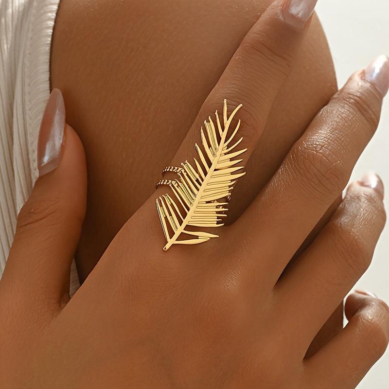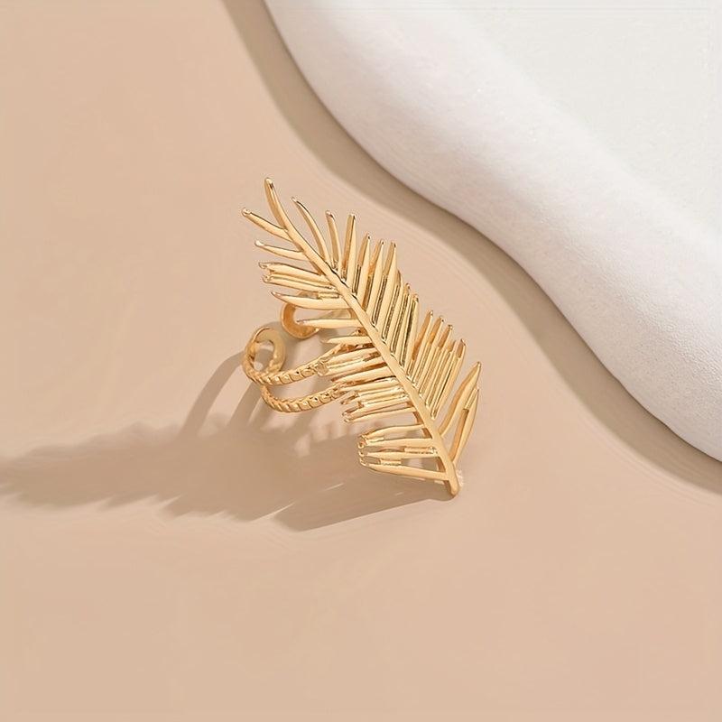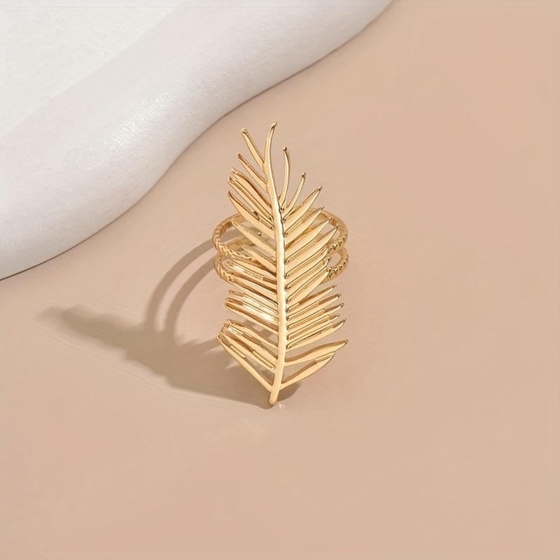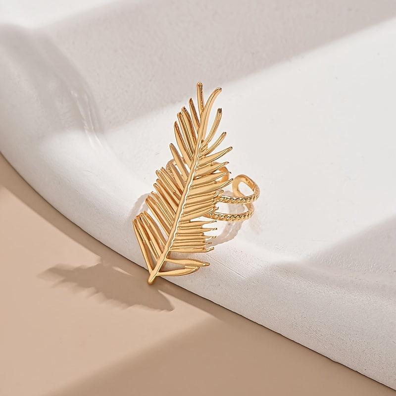 Add a touch of elegance to your style with this adjustable stainless steel leaf ring featuring a golden tone finish. Perfect for everyday wear or special occasions.