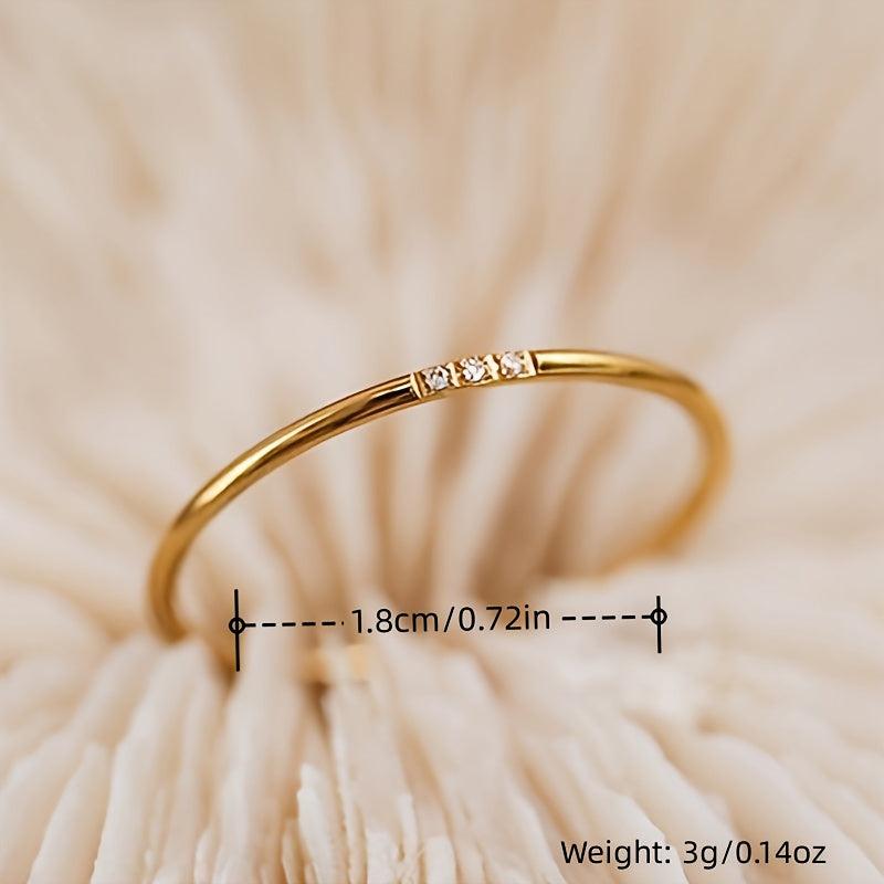 Add a touch of elegance to your look with this golden tone stainless steel ring featuring paved tiny rhinestones. Perfect for weddings or casual attire, this ring is a stylish accessory that will elevate any outfit.