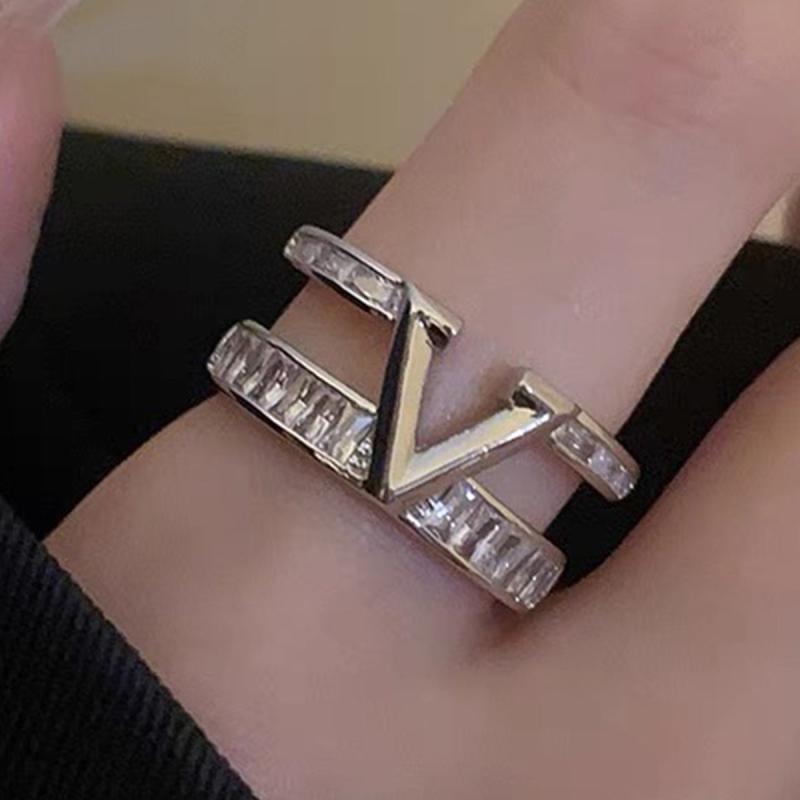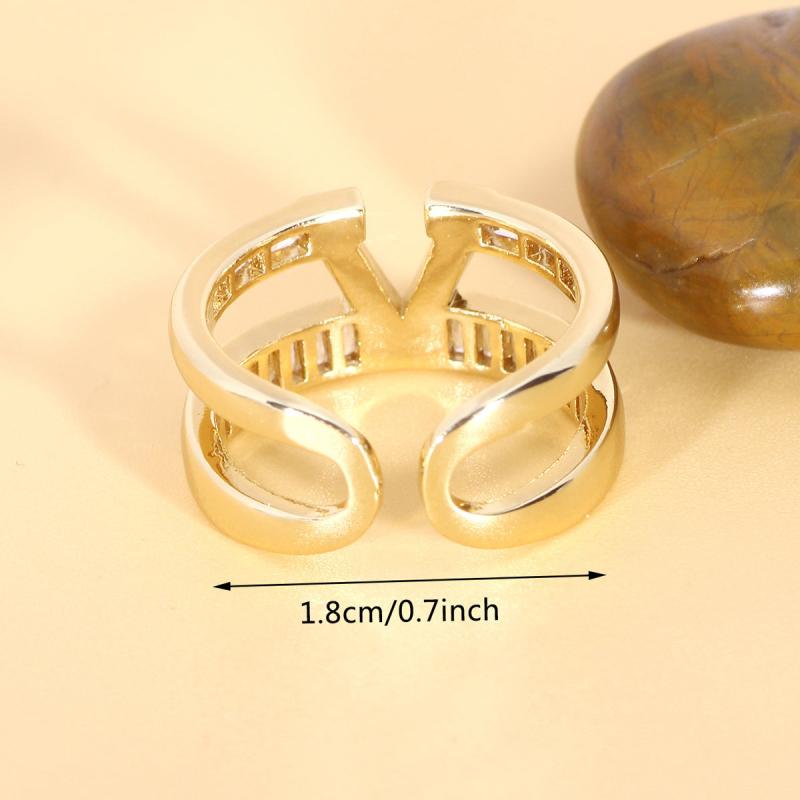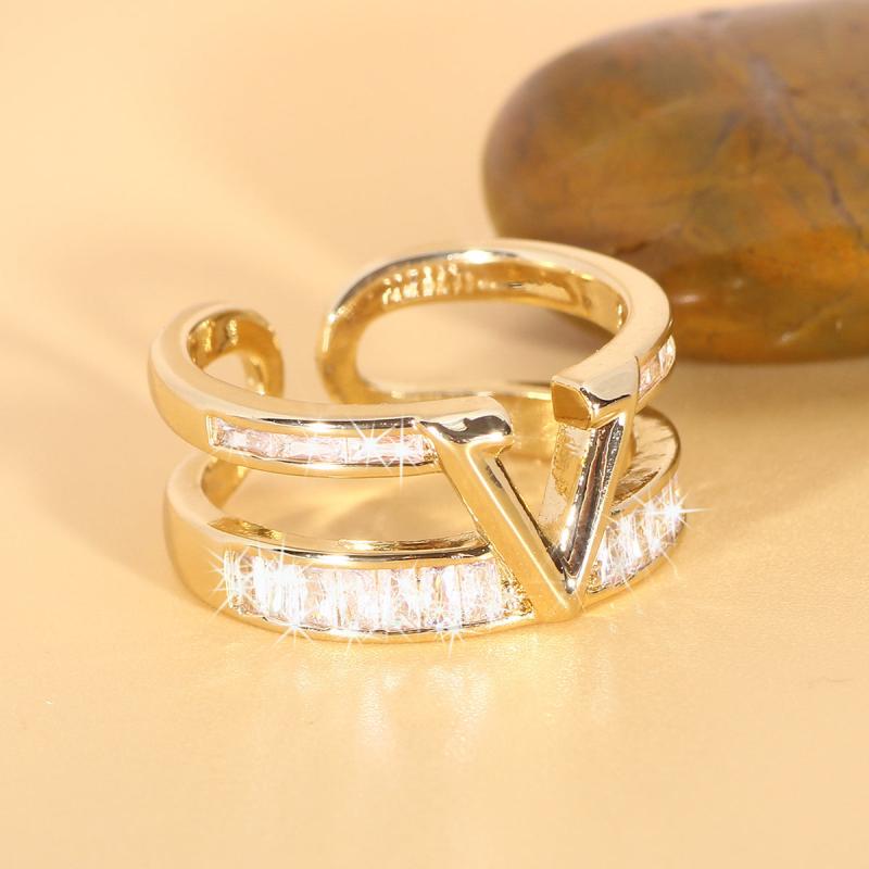 Elegant double ring with V letter design and sparkling cubic zirconia accents, ideal for weddings, anniversaries, and Mother's Day.