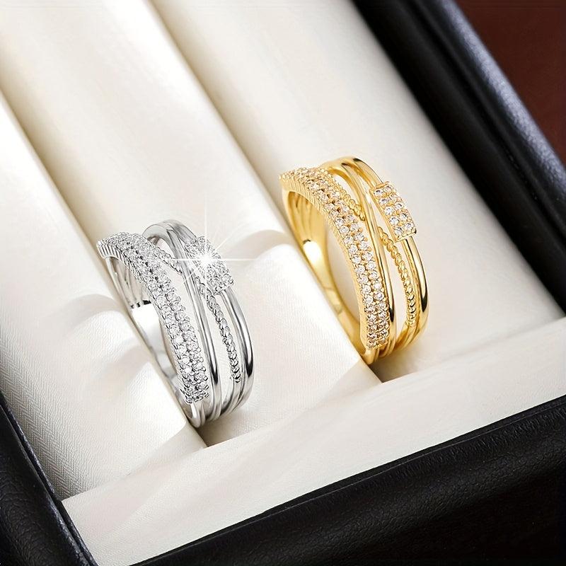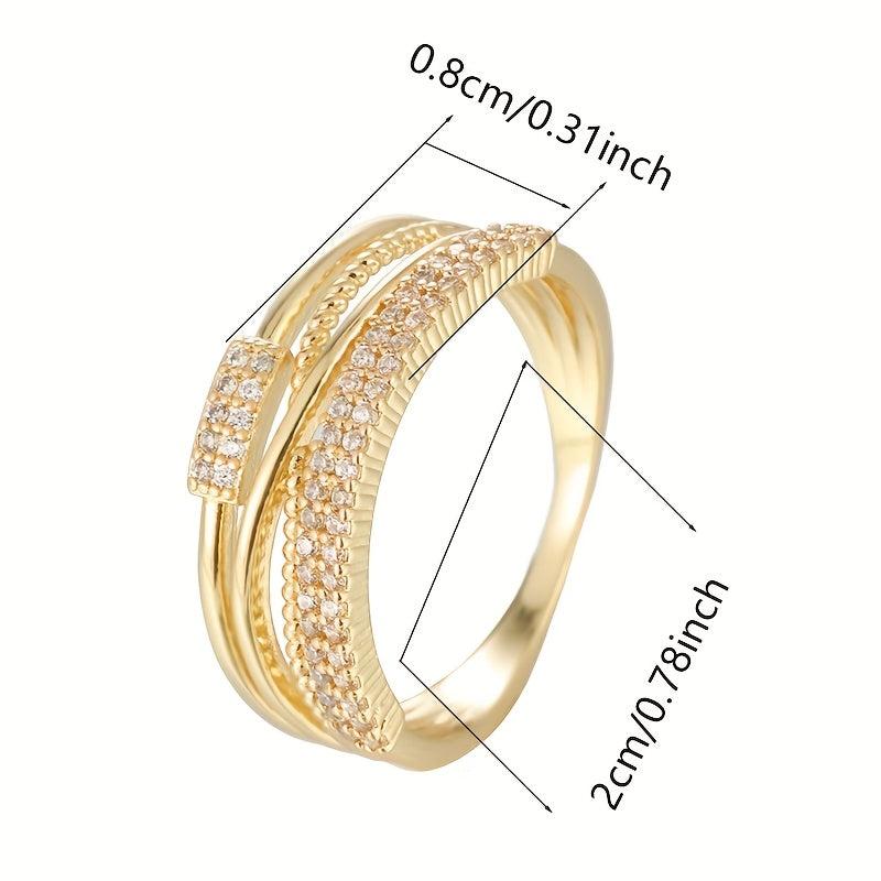 This daily wear ring features a unique design with crossed lines and sparkling cubic zirconia accents. Perfect for everyday use or as a thoughtful gift.