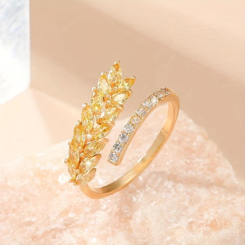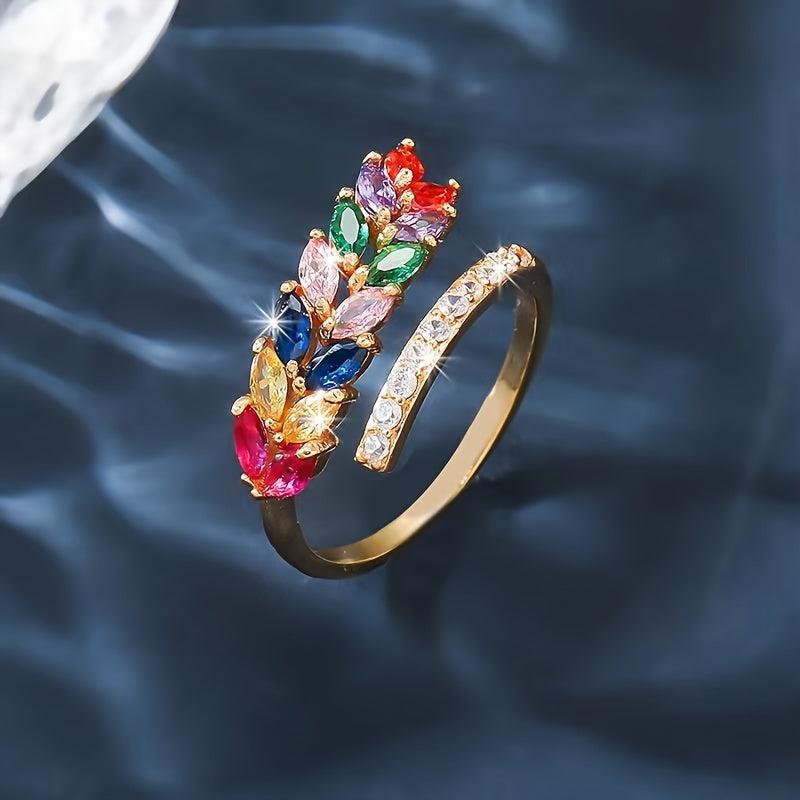 This exquisite branch ring is a versatile accessory that can be worn daily or for parties. It is crafted from copper and features stunning green and clear cubic zirconia.