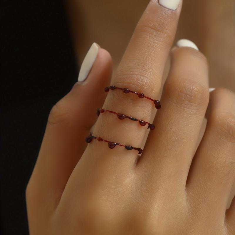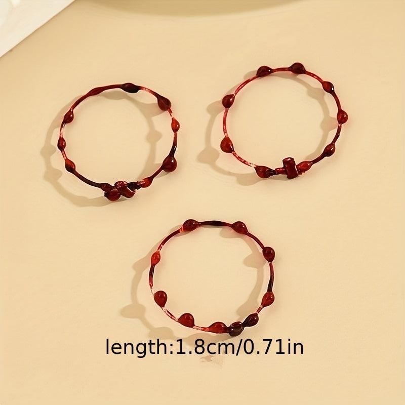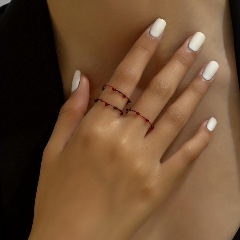 Enhance your Halloween look with these 3 pcs Gothic style stacking rings featuring blood drip design. Made of plastic, perfect for spooky celebrations.