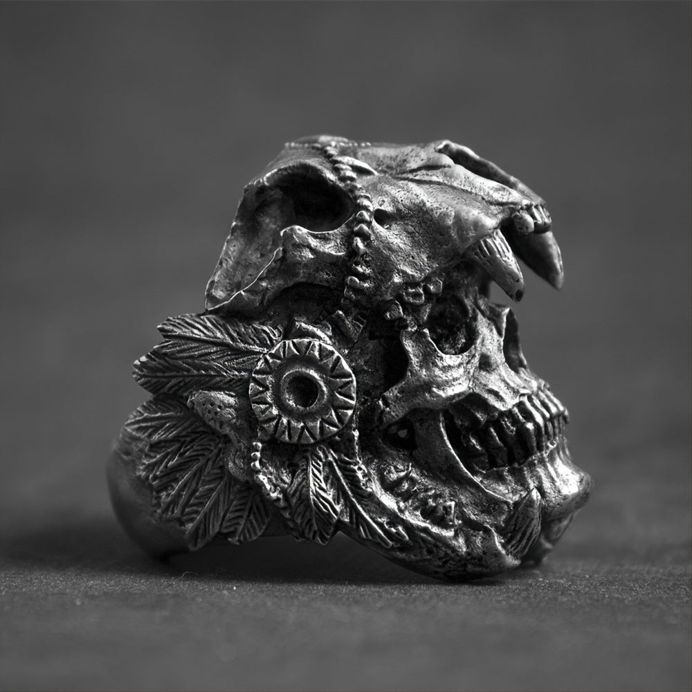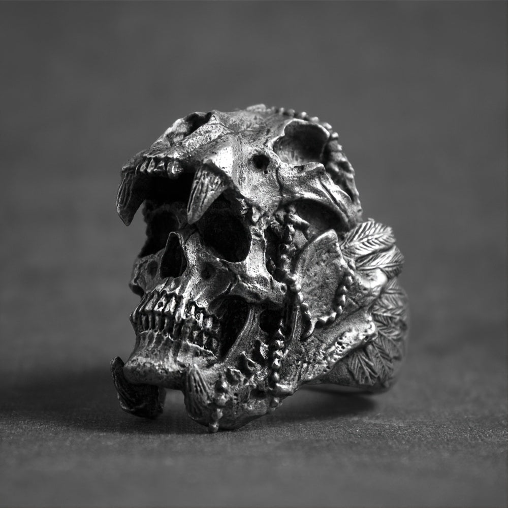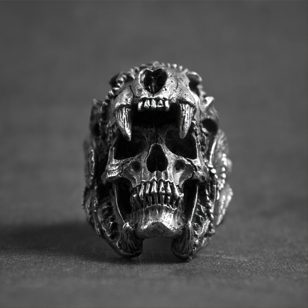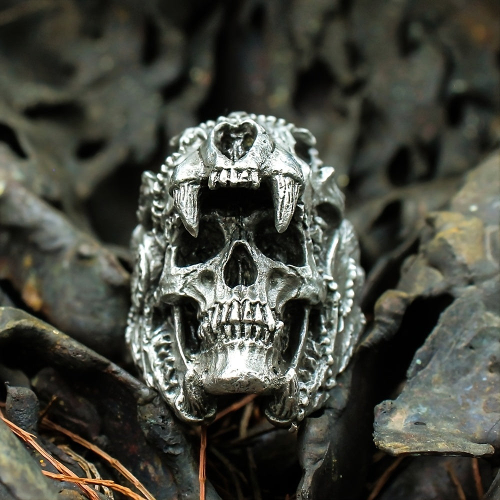 This vintage men's ring features a stylish devil skull design, perfect for gothic and punk style enthusiasts.