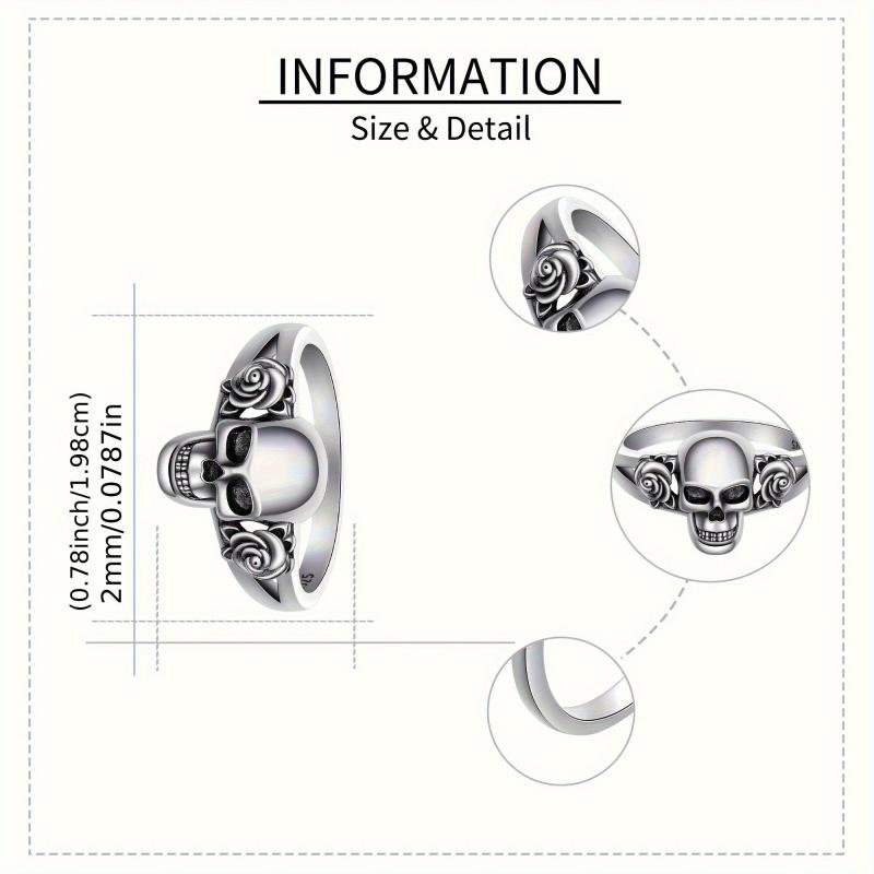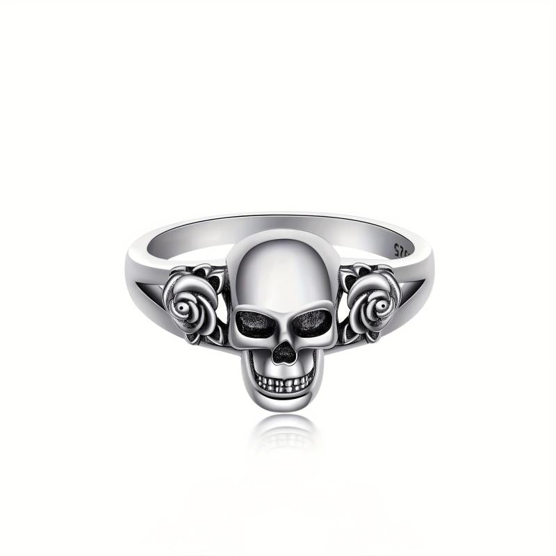 Add a touch of edge and elegance with this 925 sterling silver skull head ring featuring a rose flower design. Perfect for women who appreciate gothic style and unique accessories.