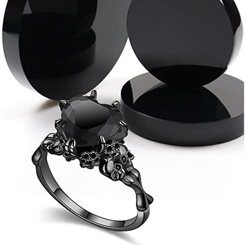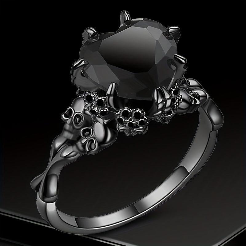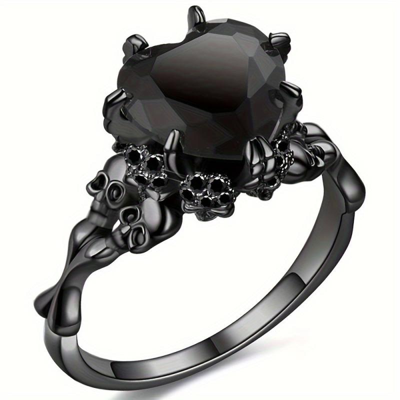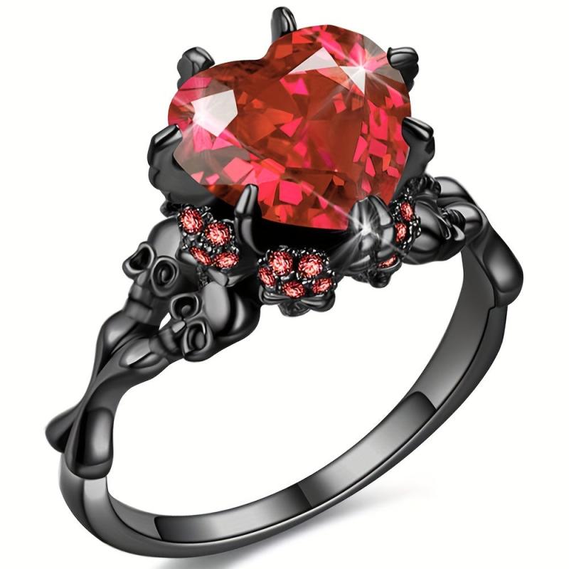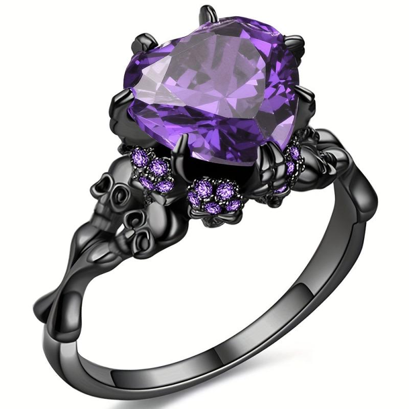 Add a touch of spookiness to your look with this gothic style ring featuring a heart shape inlaid with a horror skull on the band. The red and purple colors make a perfect Halloween statement.