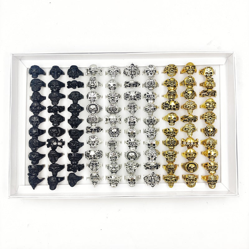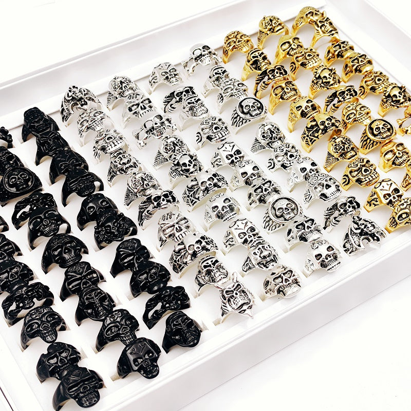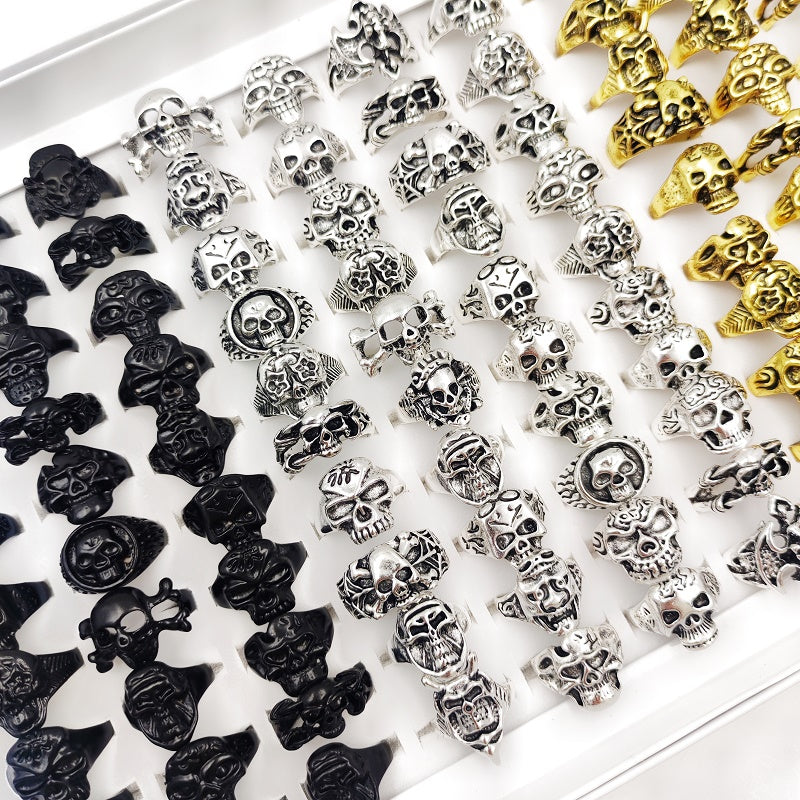 Add a touch of Gothic flair to your daily outfits with these trendy skull head rings. Perfect for Halloween season and available in various colors to match your style.